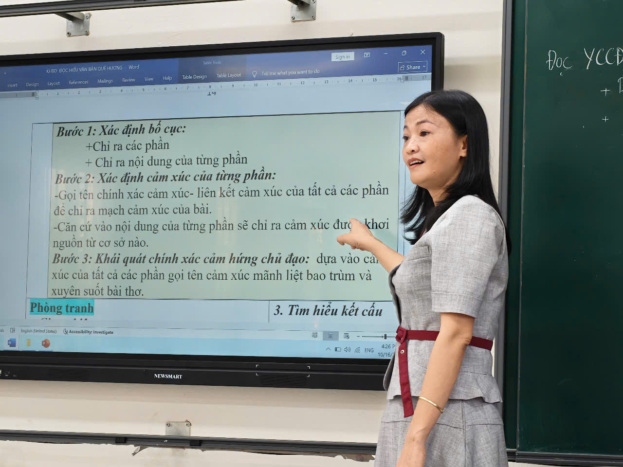 Với phong thái nhẹ nhàng, cuốn hút và sự am hiểu sâu sắc về chương trình chương trình giáo dục phổ thông 2018 môn Ngữ văn, cô Nguyễn Thảo Duyên đã mang đến cho buổi chuyên đề những gợi mở thiết thực, khoa học và giàu cảm hứng về phương pháp ôn tập hiệu quả cho học sinh lớp 9. Từ việc phân tích yêu cầu cần đạt với thể loại truyện và thơ, xác định nội dung cần kiểm tra – đánh giá cho đến việc ra các dạng câu hỏi đánh giá năng lực đọc - hiểu, cách làm các dạng câu hỏi đọc - hiểu; mỗi nội dung đều được cô trình bày một cách tỉ mỉ, gần gũi kết hợp với thực hành.