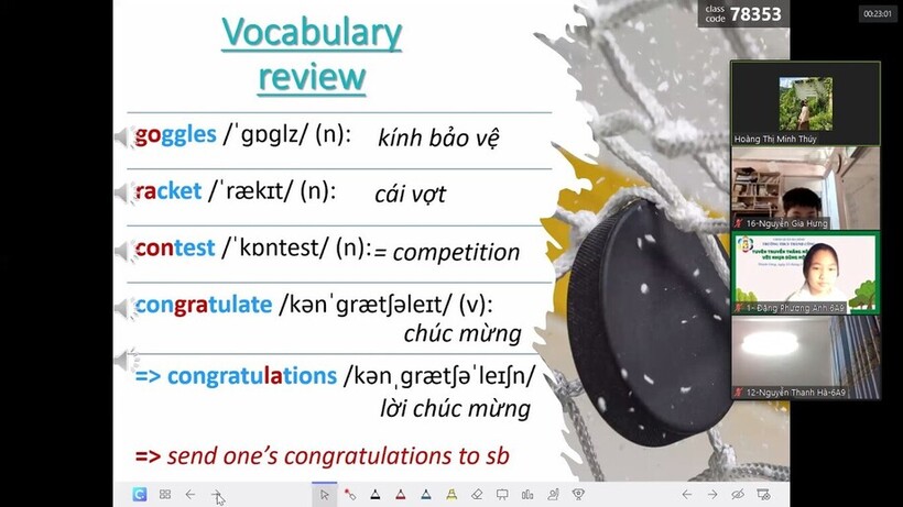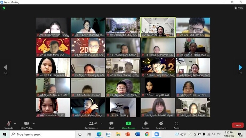 Không khí vui vẻ tại lớp học trực tuyến 6A2.