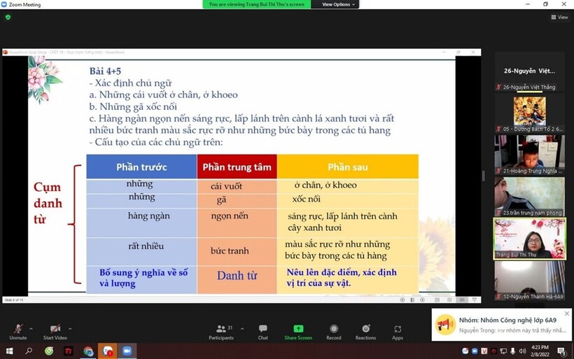 Lớp 6A8 vẫn tích cực trong các buổi học trực tuyến.