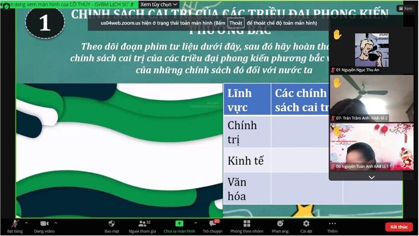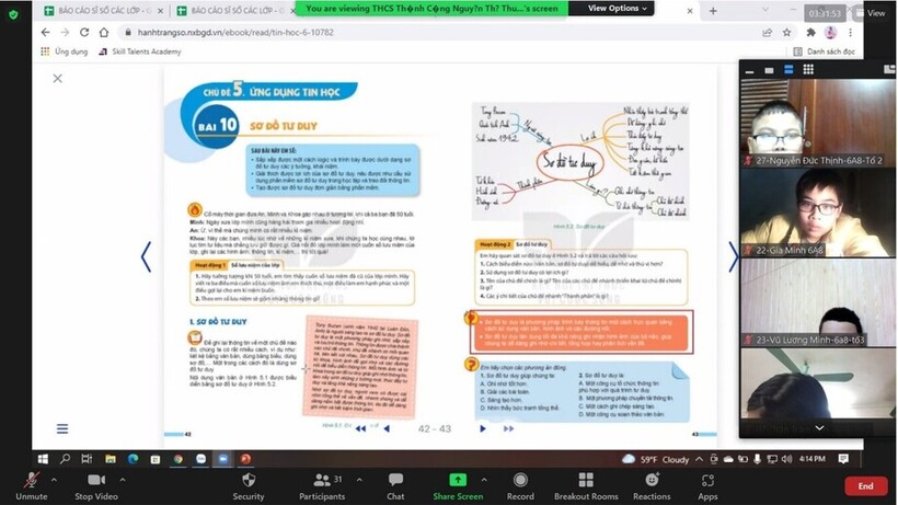 Cô trò lớp 6A9 vẫn hăng say trong buổi học trực tuyến.