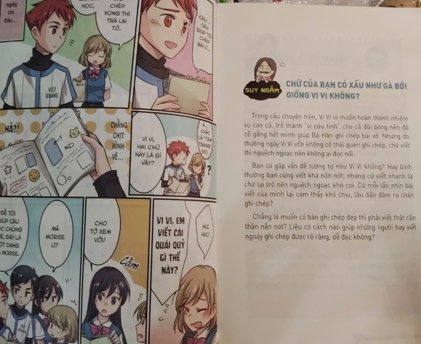 Điểm nổi bật của cuốn sách nằm ở cách trình bày cực kỳ sinh động và gần gũi. Những hình minh họa dễ thương theo phong cách truyện tranh giúp nội dung trở nên nhẹ nhàng, dễ tiếp cận. Các tình huống trong sách được xây dựng rất thực tế, phản ánh đúng những khó khăn mà học sinh thường gặp phải trong quá trình học tập. Nhờ đó, người đọc không cảm thấy khô khan mà ngược lại còn thấy hứng thú và dễ dàng áp dụng.