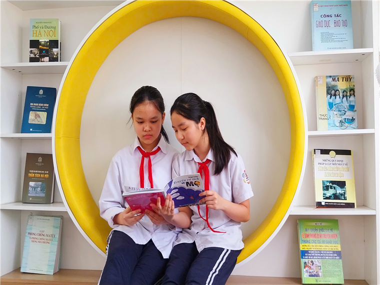 Các bạn học sinh trường THCS Thành Công đọc sách tại thư viện.
