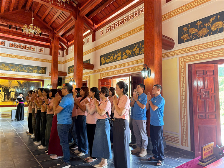 Chi bộ dâng hương tại Nhà tưởng niệm Chủ tịch Hồ Chí Minh thuộc chiến khu ATK Định Hóa