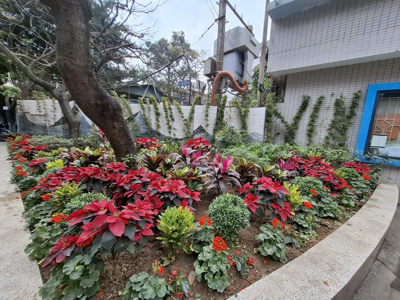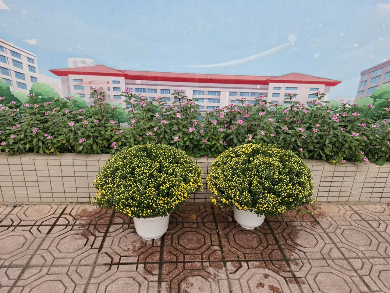 Những bông hoa đủ sắc màu khoe mình dưới nắng sớm ban mai đẹp lung linh như những nụ cười hồn nhiên của chúng mình. Khắp các hành lang và bồn hoa, đủ loại hoa đang đua nhau khoe sắc khiến không gian học tập trở nên thơ mộng và tràn đầy sức sống.