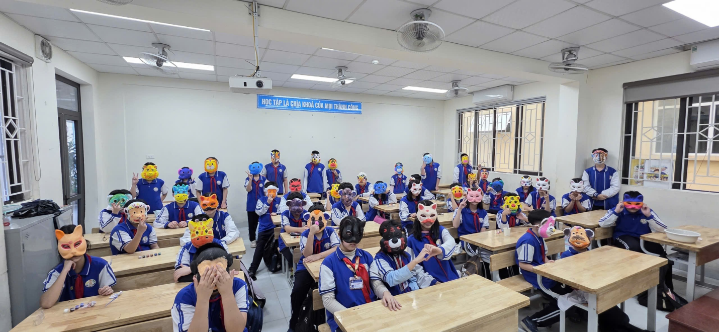 Hoạt động tô mặt nạ đã biến phòng học của chúng em thành một xưởng nghệ thuật rực rỡ. Dưới sự hướng dẫn của cô giáo chủ nhiệm, học sinh lớp 6A7 đã tự tay biến những chiếc mặt nạ bột thô sơ thành những tác phẩm đầy màu sắc, mang đậm hơi thở của các nhân vật quen thuộc trong múa rối, tuồng chèo, đặc biệt là hình tượng Ông Địa, Chú Tễu hay các nhân vật Thần… với ý nghĩa giáo dục sâu sắc.