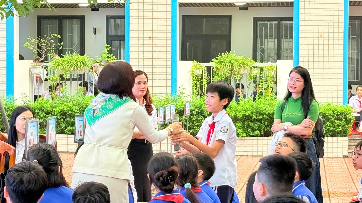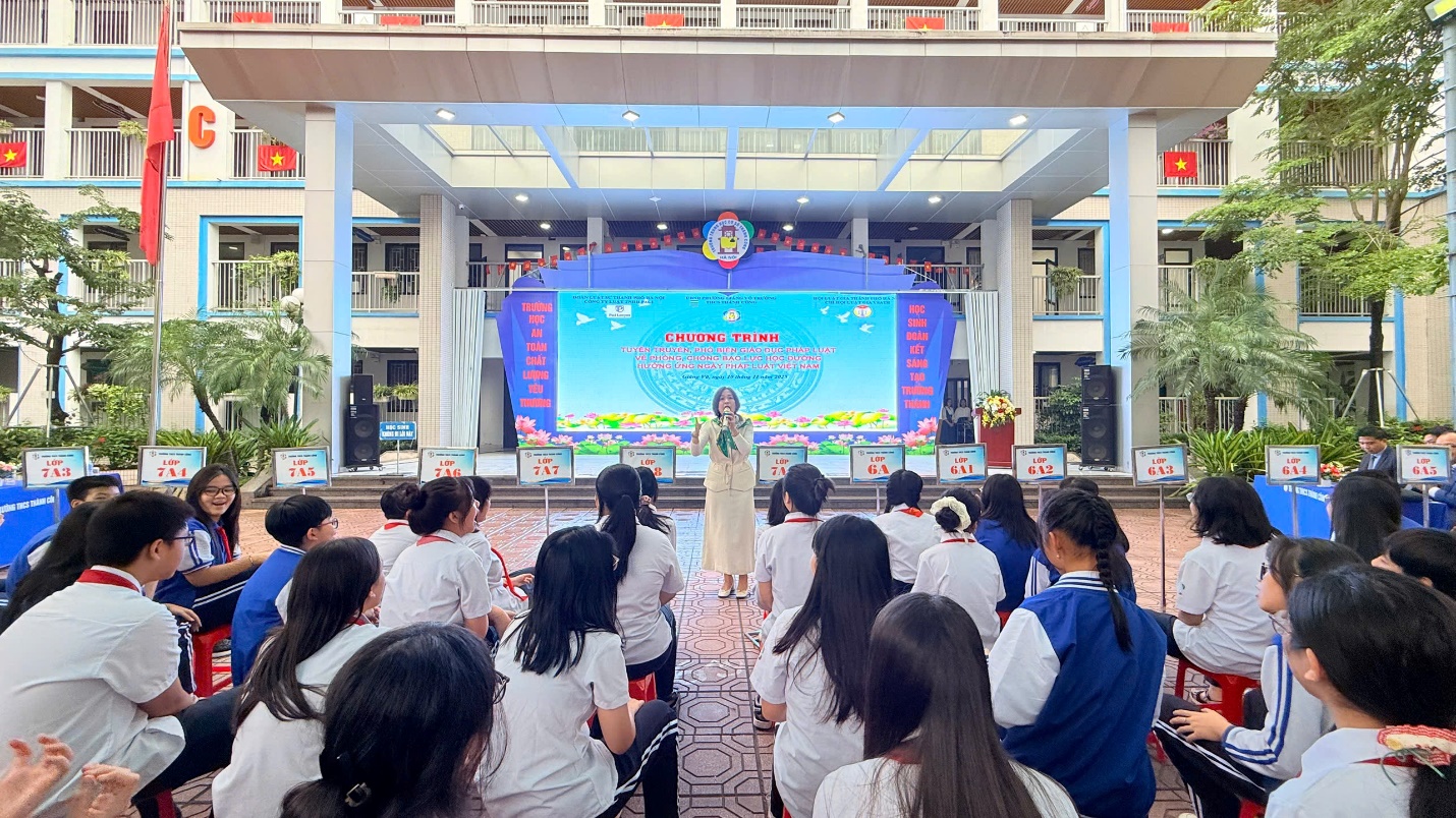 Ngay từ những giây phút đầu tiên khi tiếng trống vang lên, toàn trường nghiêm trang làm lễ chào cờ và hát Quốc ca, em cảm thấy lòng mình tràn đầy tự hào và xúc động. Sau phần nghi thức, cô Tổng phụ trách Đội tuyên truyền về ý nghĩa Ngày Pháp luật Việt Nam (9/11), giúp chúng em hiểu rõ hơn tầm quan trọng của việc sống và học tập theo pháp luật.