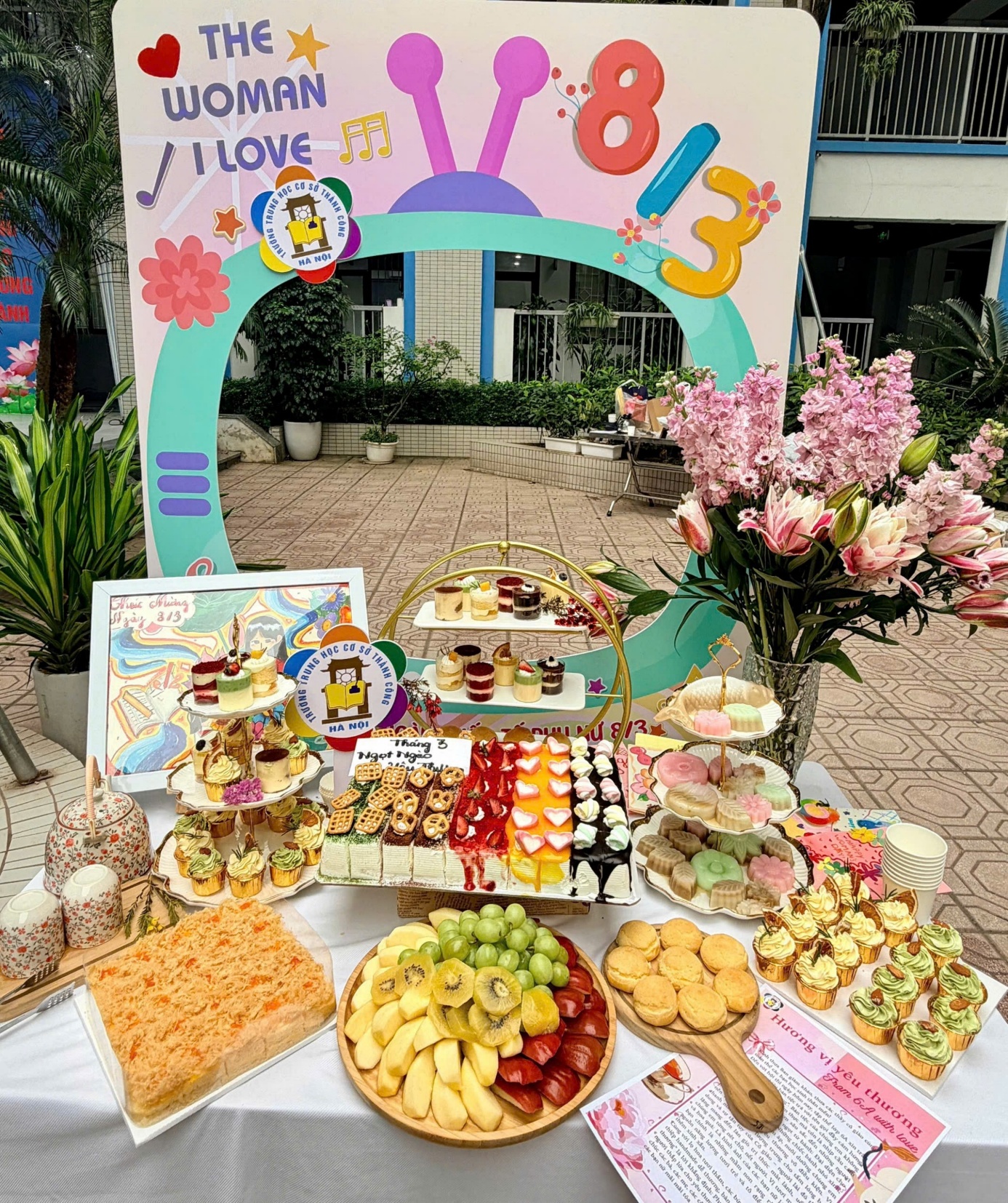Các thành viên 6A sẽ không quên bàn tiệc ngọt ngào này bởi mỗi bạn đều góp công sức và tình cảm để tạo nên một “món quà” đặc biệt. 🌸🍰💐