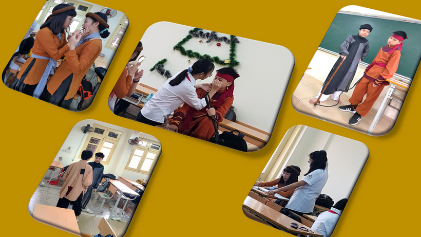 Phần được mong đợi nhất của tiết học chính là hoạt động của nhóm làm phim. Các bạn ấy phân chia công việc của nhóm rất chi tiết và cụ thể: nhóm lo trang phục, nhóm hoá trang, nhóm đạo cụ, nhóm viết kịch bản, nhóm đạo diễn, nhóm quay phim, nhóm diễn viên thể hiện kịch bản và nhóm hậu kì. Trước khi xem các bạn ấy biểu diễn, chúng tớ được dẫn dắt bởi nhóm hậu kì, từ công đoạn chuẩn bị đến công đoạn tập và công đoạn hoàn thành. Xem qua clip ghi hình mà chúng tớ cười nghiêng ngả và phục các bạn ấy sát đất. Riêng khâu chọn diễn viên nào cho vai nào được các bạn ấy rất kì công. Phải nói, các bạn ấy làm việc thật sự nghiêm túc với tất cả niềm đam mê.