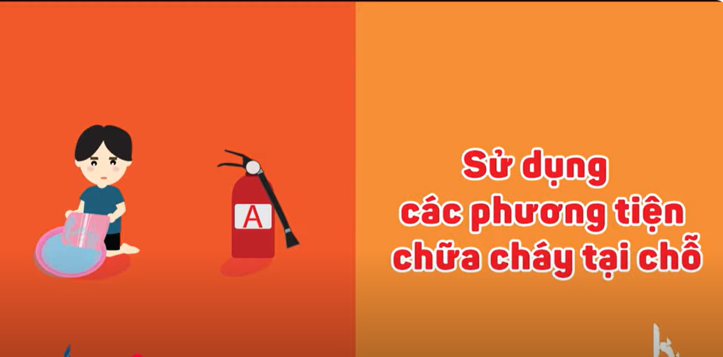 - Dùng bình chữa cháy (bột, CO2), nước, cát, chăn/mền ẩm để dập tắt đám cháy ngay khi mới phát sinh, tập trung vào gốc lửa.