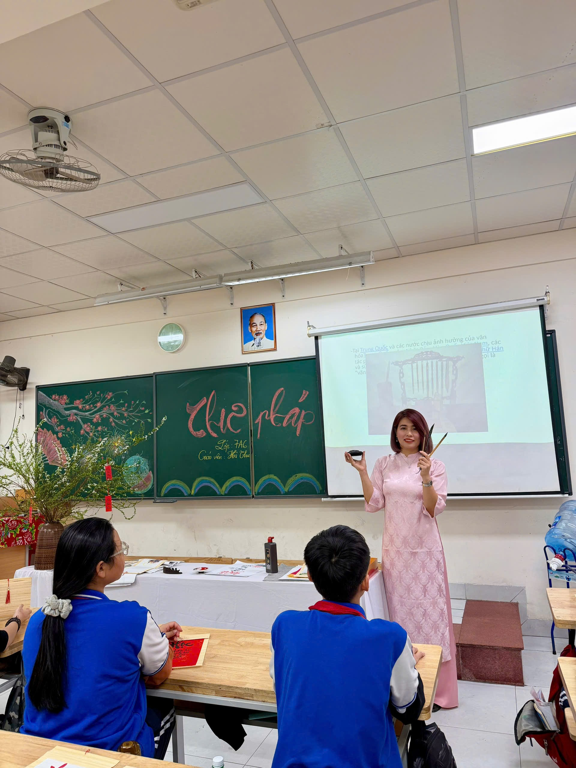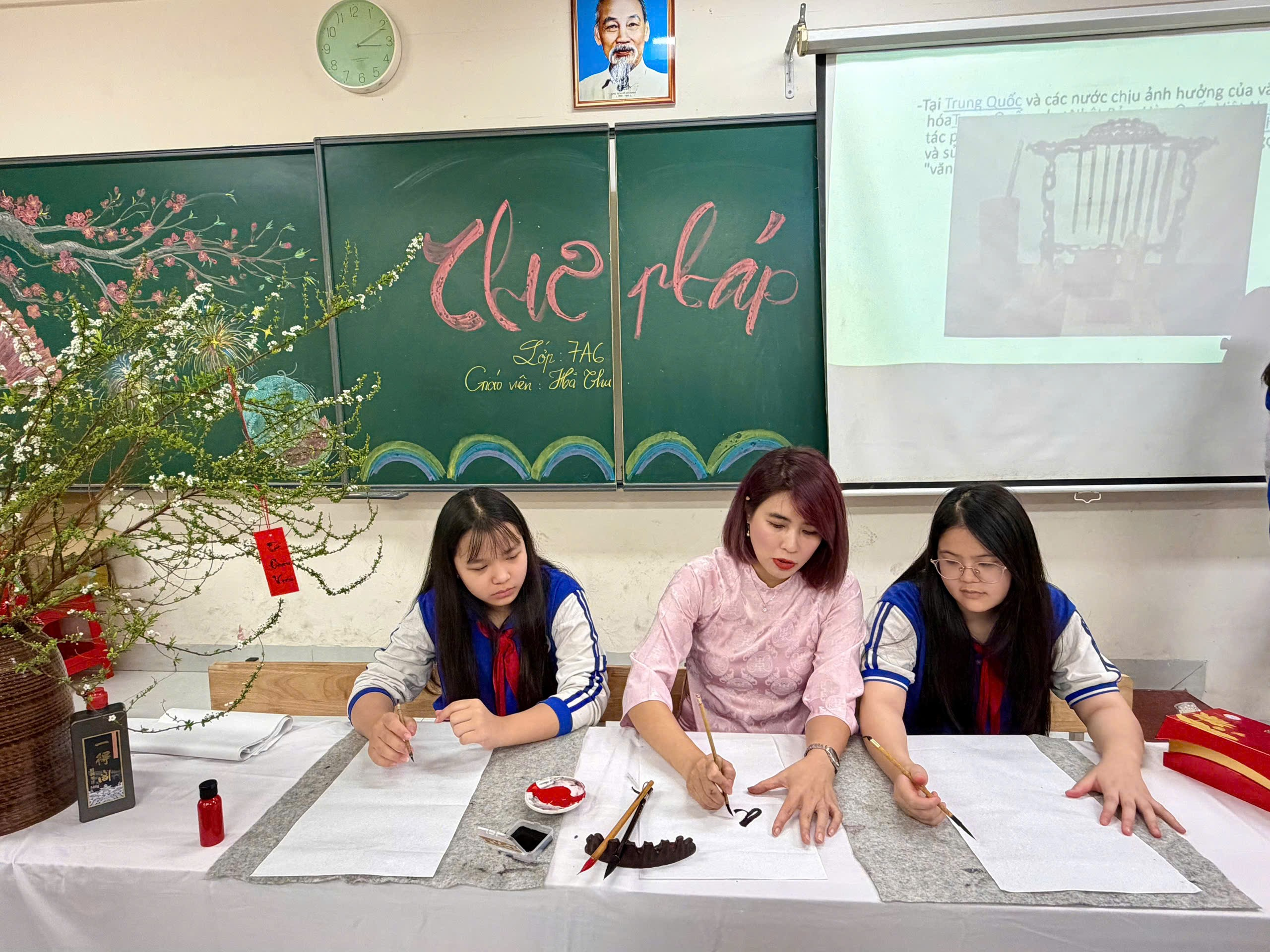 Không khí tến đến xuân về đã lan tỏa khắp không gian trường THCS Thành Công, và đặc biệt không khí ấy còn tưng bừng hơn ở lớp 7A6 qua hoạt động trải nghiệm Thư pháp Việt. Cô giáo chủ nhiệm Hà Thu (cũng là giáo viên dạy Ngữ văn) của chúng mình đã tổ chức buổi tìm hiểu về nghệ thuật Thư pháp Việt ngay tại lớp học.