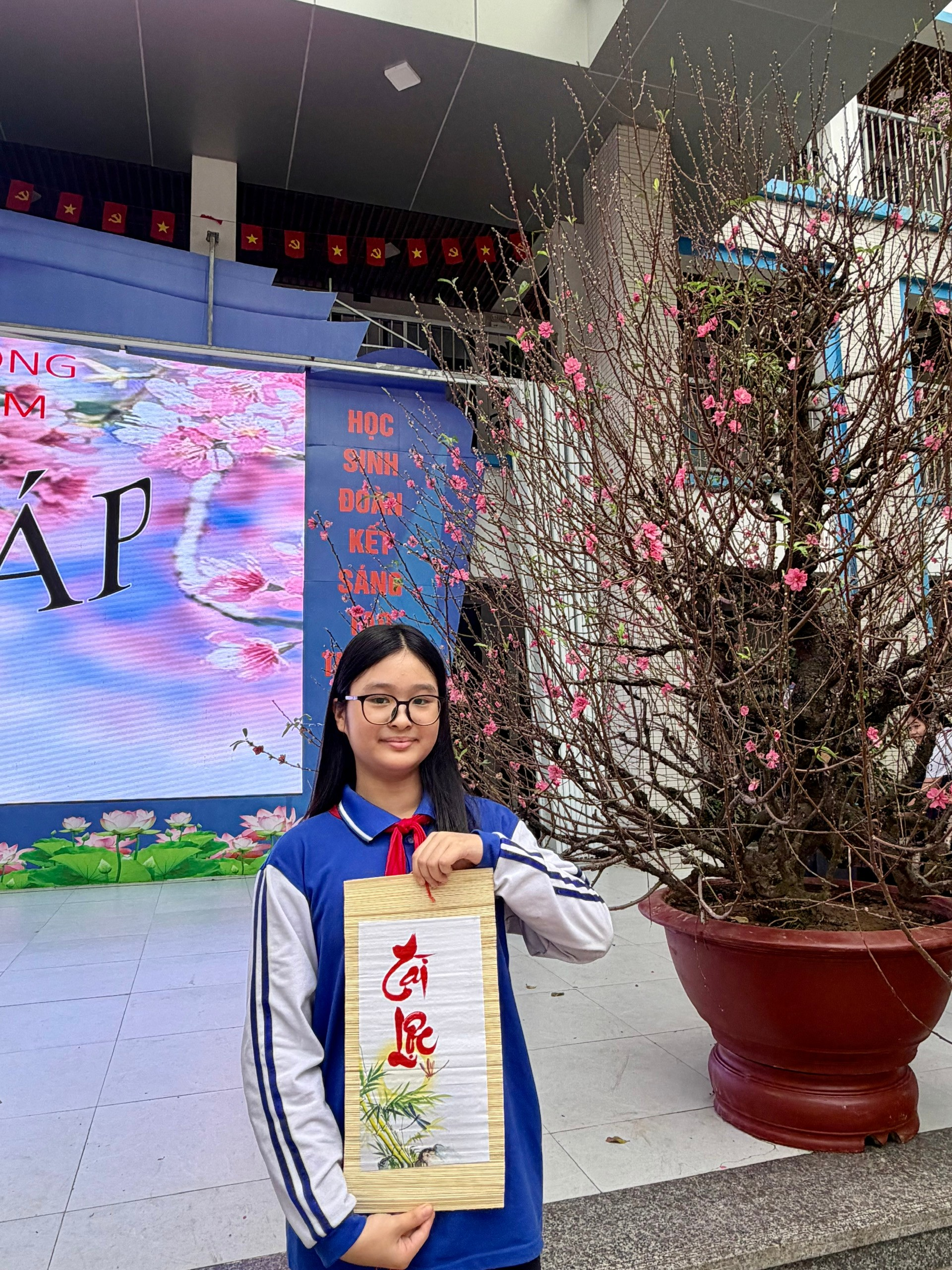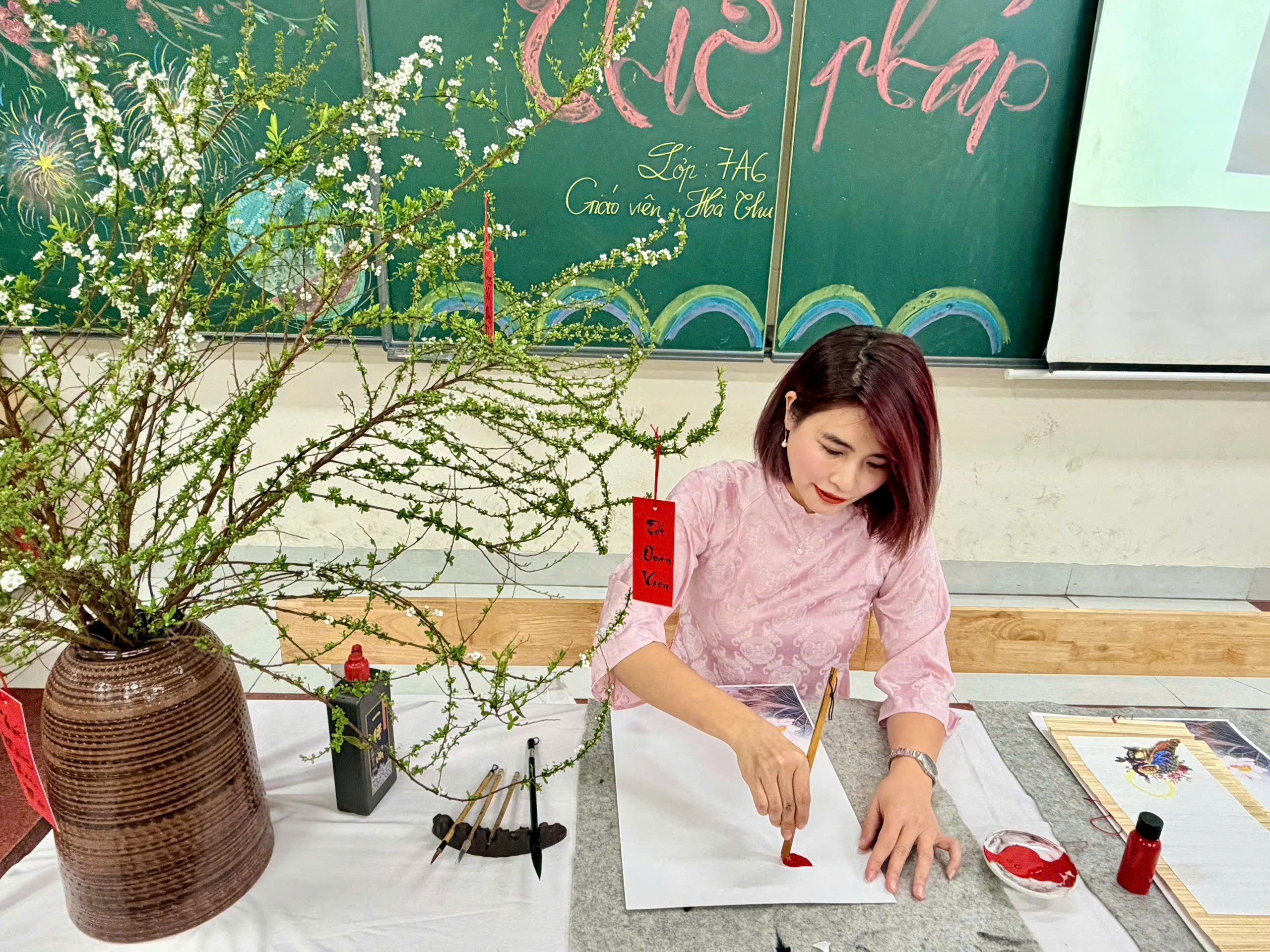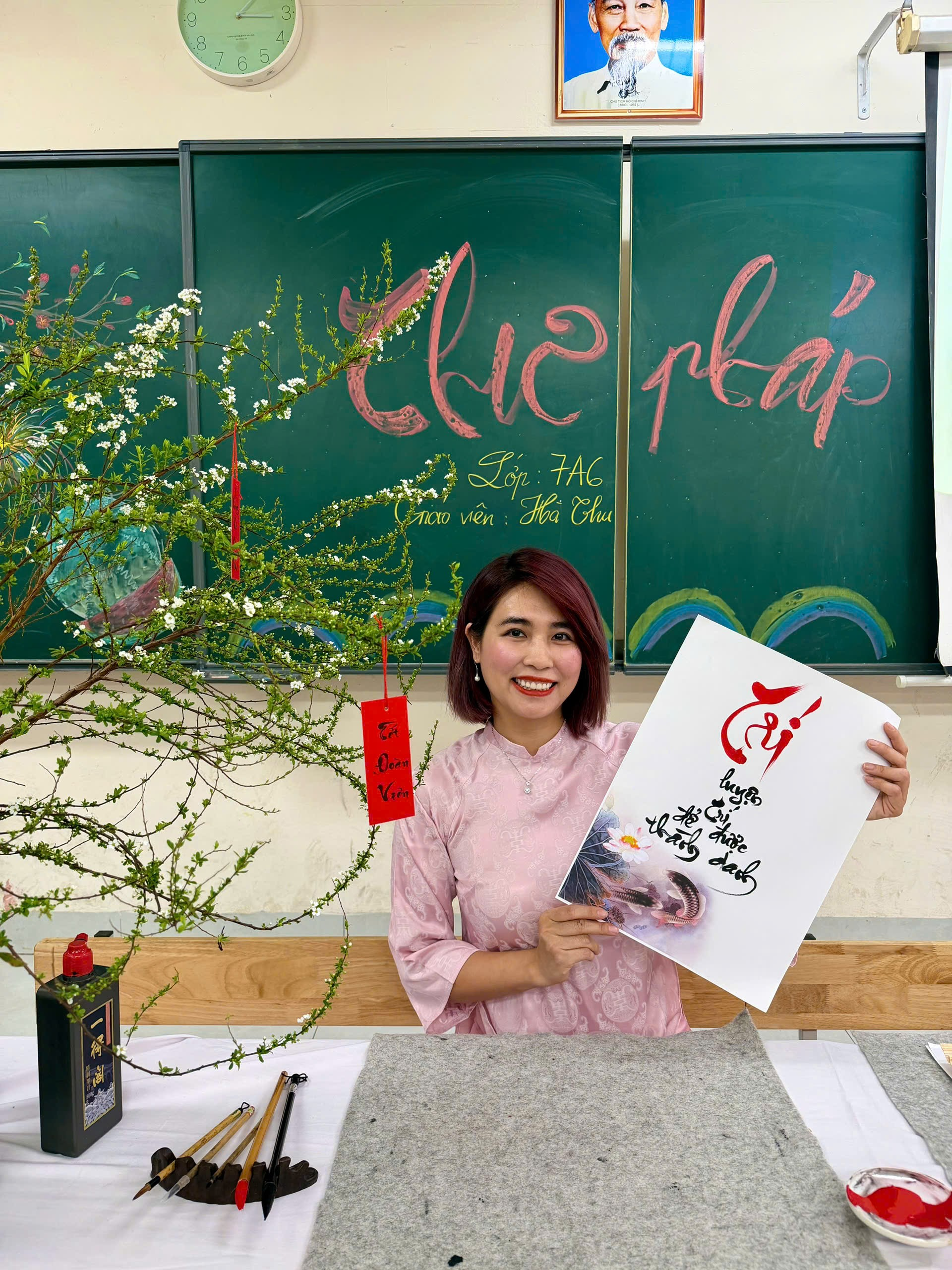 Trong hoạt động này, những bức thư pháp mang ý nghĩa may mắn, học hành đỗ đạt đã được cô viết, tặng tận tay từng học sinh. Hoạt động này không chỉ giúp các em học sinh thư giãn sau những giờ học căng thẳng mà còn bồi đắp thêm lòng tự hào dân tộc, giúp các em trân trọng hơn tiếng Việt và nghệ thuật truyền thống.