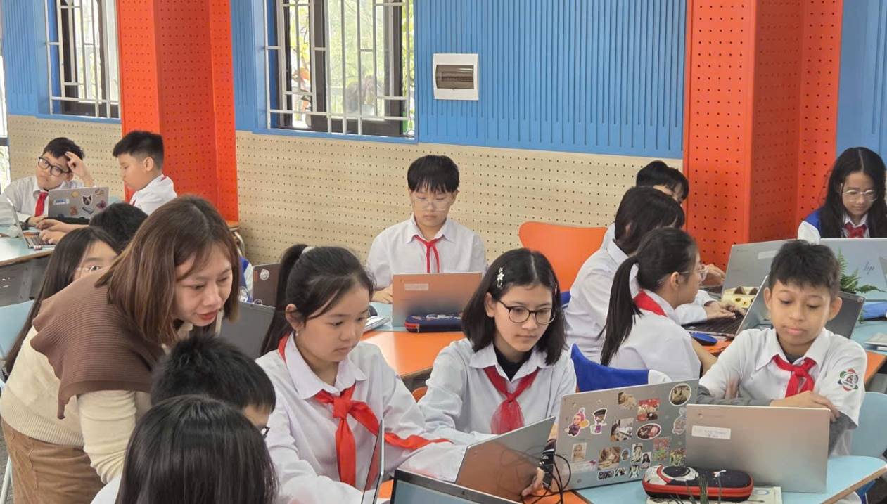 Trong giờ học, chúng mình được tăng cường các hoạt động học tập cá nhân cũng như làm việc nhóm trên máy tính. Không khí lớp học nghiêm túc nhưng cũng rất sôi nổi. Các bạn trong nhóm cùng quan sát mẫu vật, trao đổi ý kiến và phối hợp thao tác trên máy tính để hoàn thành nhiệm vụ được giao. Dưới sự hướng dẫn và hỗ trợ kịp thời của cô giáo, chúng mình biết cách chia sẻ công việc, lắng nghe ý kiến của nhau và cùng giải quyết vấn đề. Qua hoạt động này, chúng mình không chỉ nâng cao kiến thức mà còn rèn luyện kỹ năng sử dụng công nghệ và tinh thần hợp tác trong học tập.