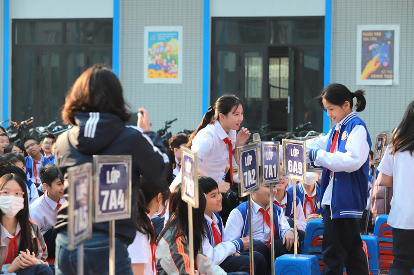 Tiếp đến là phần trò chơi. Chao ôi! Hàng nghìn cánh tay phủ kín khắp sân trường. Nhìn mọi phía đâu đâu cũng là những cánh tay đang giơ cao để được gọi trả lời và dành được những phần quà hấp dẫn. Không khí thật sôi động và hào hứng biết chừng nào.