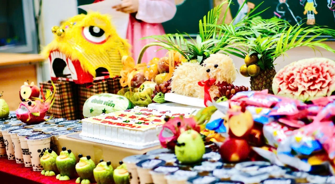 Sau những trò chơi, điều mà tất cả chúng em háo hức chờ đợi chính là phần phá cỗ. Mâm cỗ được bày biện thật đẹp với bánh nướng, bánh dẻo, kẹo, hoa quả đủ màu sắc. Cả lớp quây quần bên nhau, cùng nhau chia sẻ từng miếng bánh, từng trái ngọt. Trong không gian đó, từng tiếng cười giòn tan vang lên, xua tan mọi mệt mỏi sau giờ học, để chỉ còn lại sự ấm áp và niềm vui hồn nhiên.