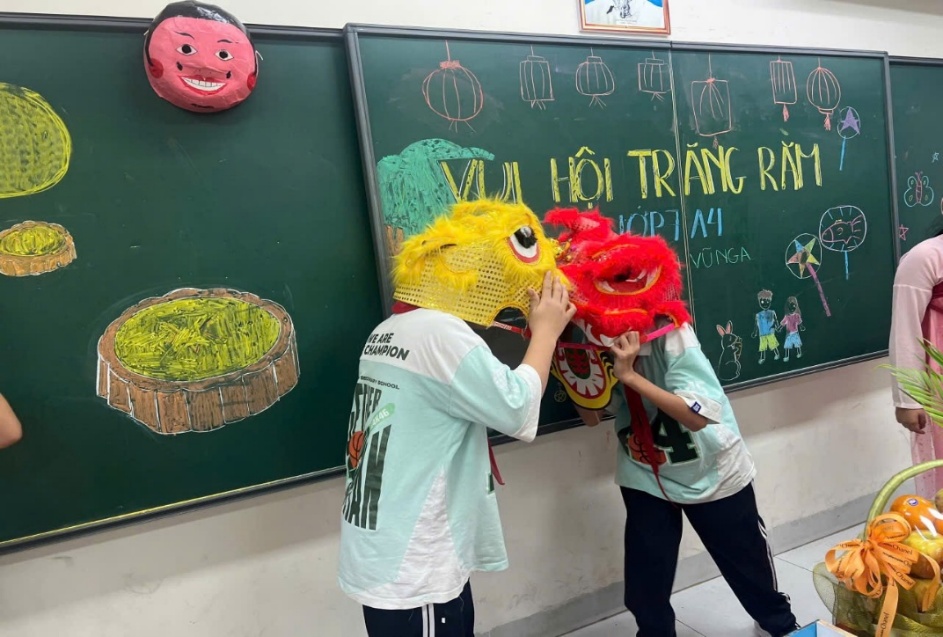 Ngay từ buổi chiều hôm đó, lớp học của chúng em đã khoác lên mình một “tấm áo mới”. Trên trần treo những lá cờ Tổ quốc, những chiếc đèn lồng nhỏ xinh rực rỡ sắc màu. Góc lớp được trang trí bằng tranh ảnh, câu thơ về trăng rằm, khiến không gian càng thêm ấm áp, gần gũi. Chỉ cần bước vào lớp, ai cũng có thể cảm nhận ngay hương vị ngọt ngào của Trung thu đang tràn ngập khắp nơi.