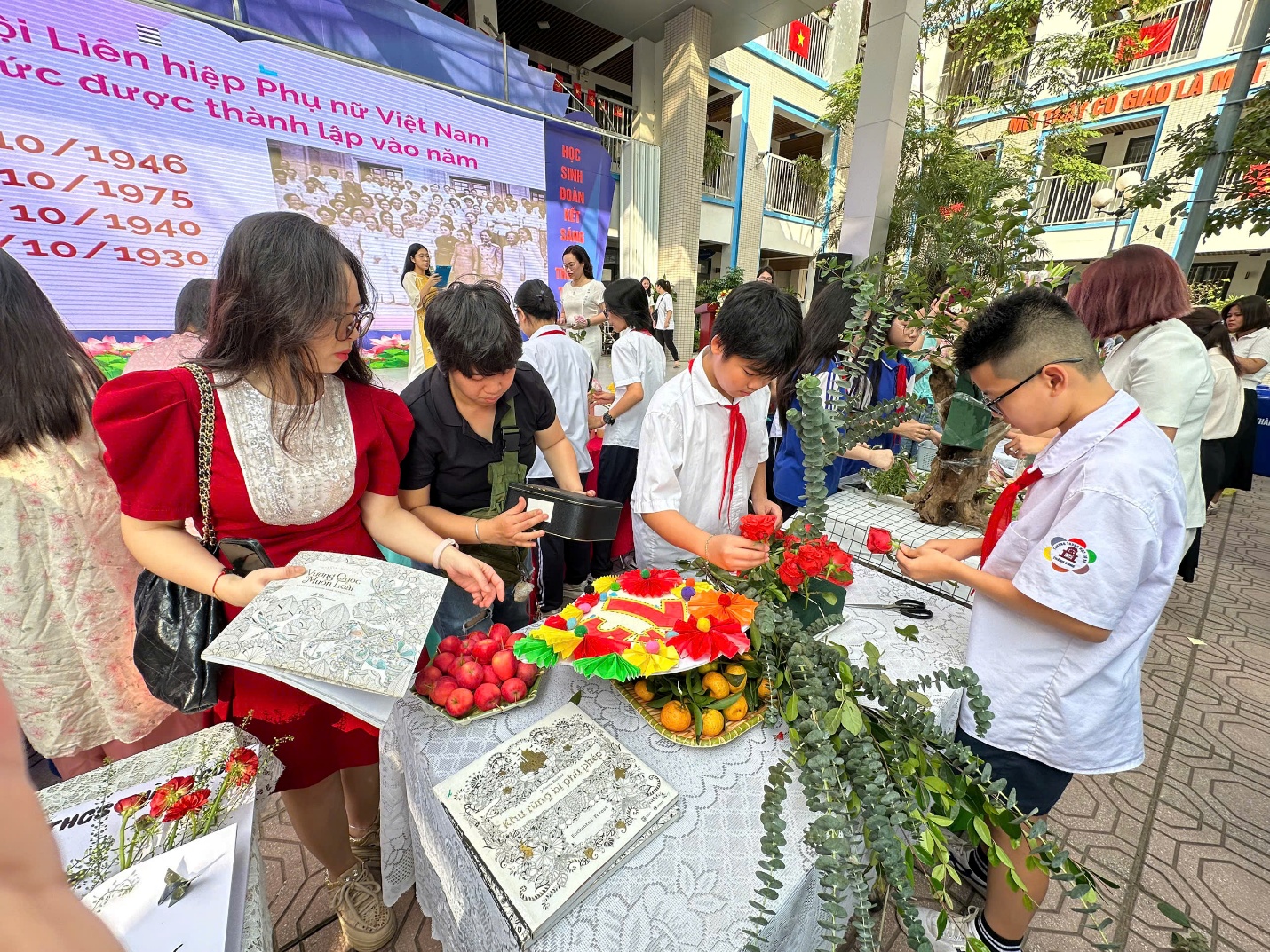 Các bạn nam của lớp đem đến hội thi sản phẩm cắm hoa mang ý nghĩa sâu sắc: tôn vinh vẻ đẹp, sự hy sinh và tình yêu thương bao la của mẹ, cô giáo và những người phụ nữ Việt Nam. Mỗi bông hoa, mỗi sắc màu đều là lời nhắn gửi yêu thương – là biểu tượng của lòng biết ơn, sự kính trọng và trân trọng những giá trị dịu dàng, mạnh mẽ của người phụ nữ.
