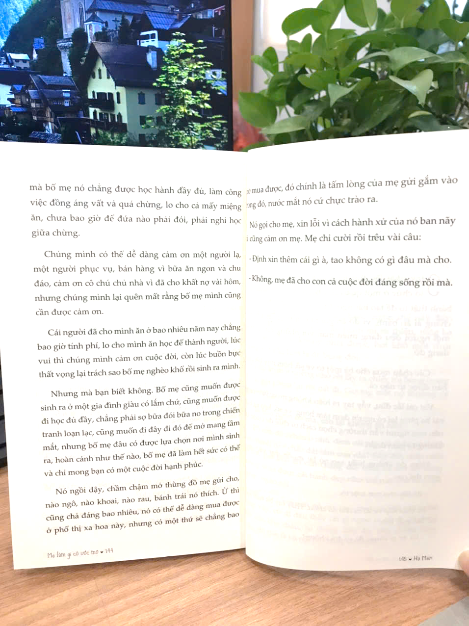 Cuốn sách không chỉ giúp tôi hiểu hơn về mẹ, mà còn thôi thúc tôi cần quan tâm, lắng nghe và sẻ chia nhiều hơn với người phụ nữ âm thầm đứng phía sau mỗi thành công của con cái. Đây không phải là một cuốn sách quá dài hay phức tạp, nhưng lại có sức lay động rất lớn – bởi vì nó chạm đến những điều chân thật nhất trong tình thân, trong ký ức và trong trái tim mỗi người. "Mẹ làm gì có ước mơ" là một cuốn sách dành cho những ai muốn hiểu hơn về mẹ mình, về những nỗi niềm bị chôn giấu sau nụ cười của một người phụ nữ mang tên “mẹ”. Một cuốn sách nhẹ nhàng nhưng thấm thía, để mỗi chúng ta biết trân trọng hơn người phụ nữ quan trọng nhất cuộc đời mình.