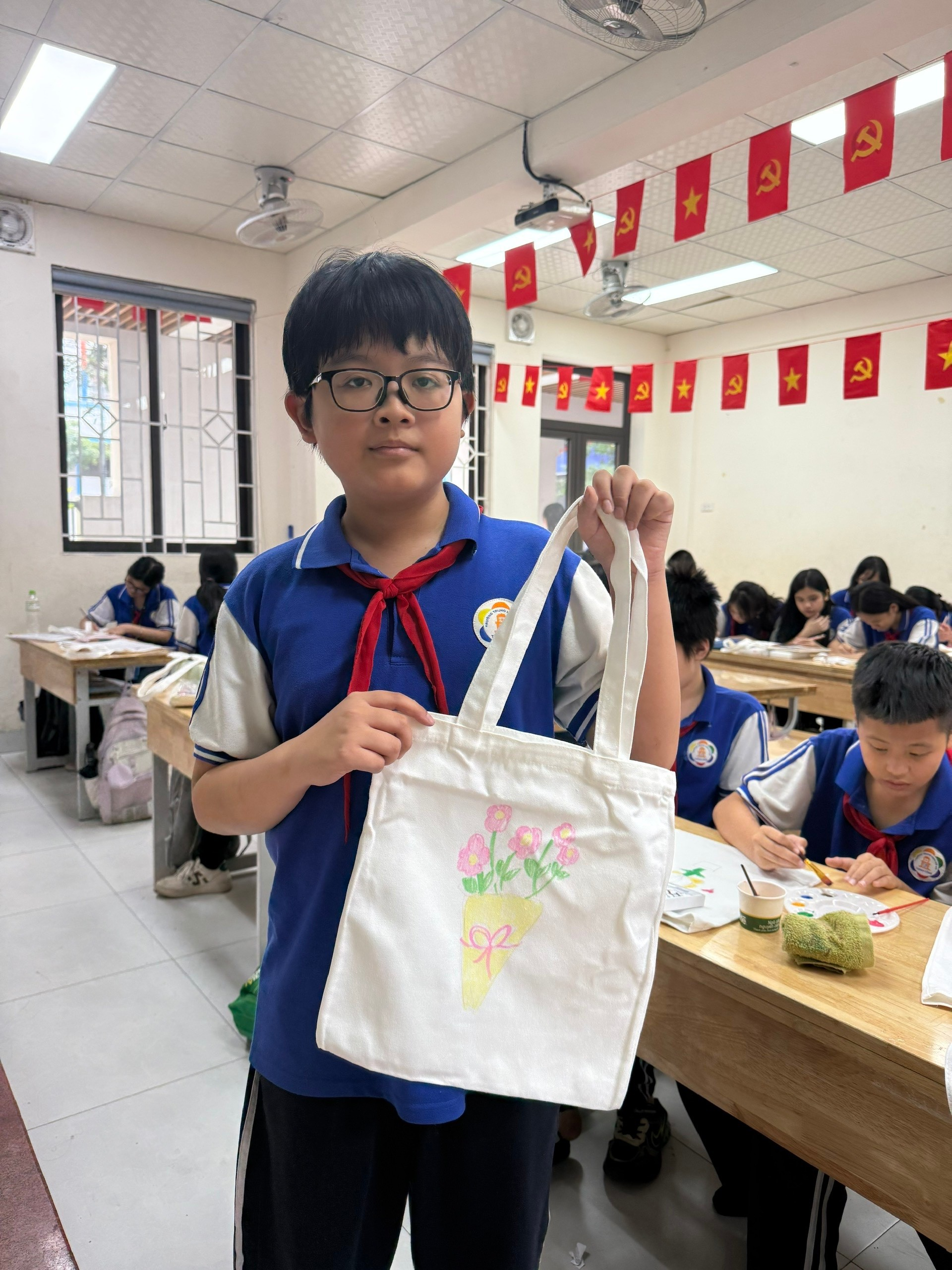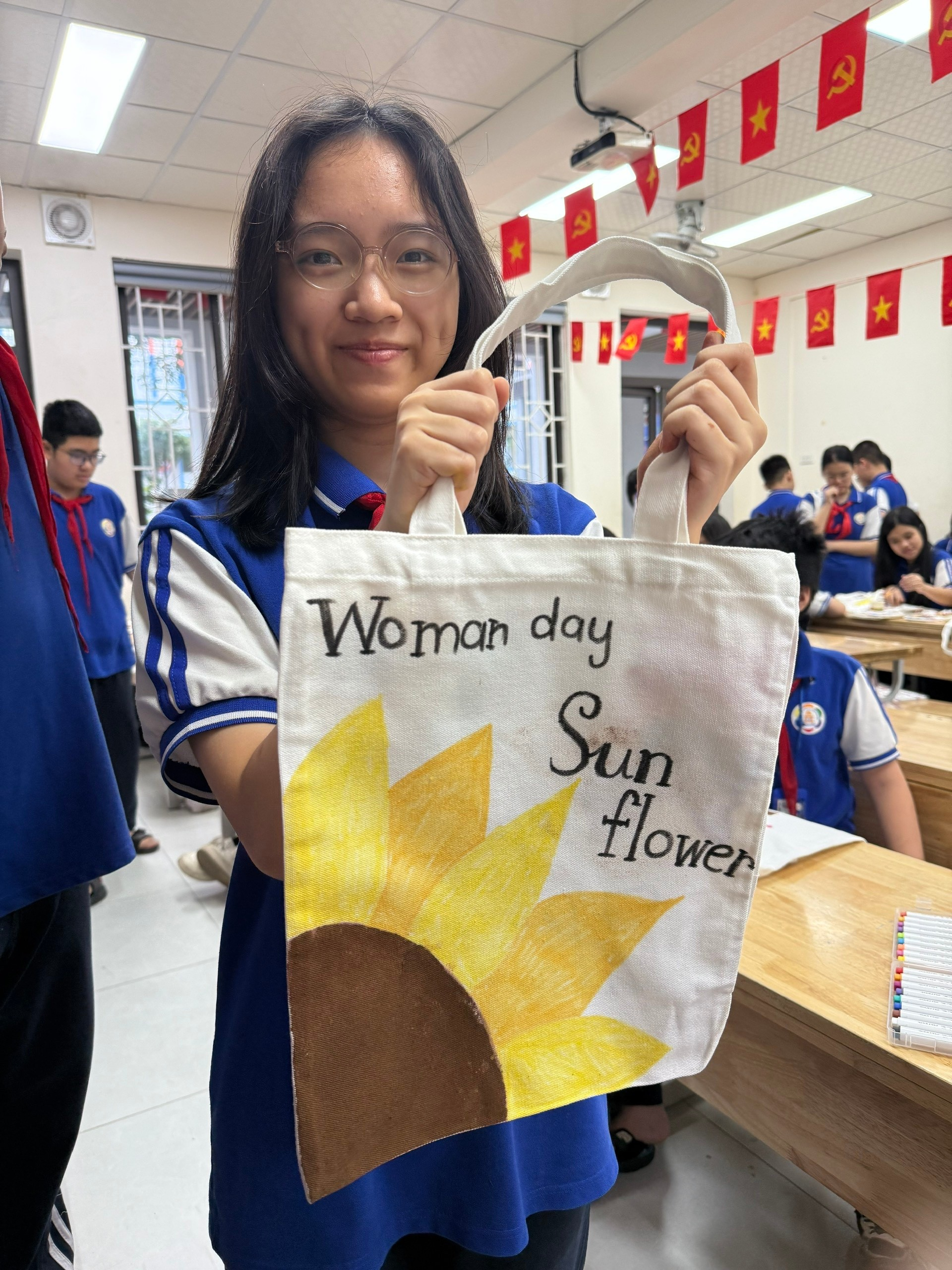 Mỗi năm, khi tháng 10 về, lòng chúng ta lại rộn ràng hướng về những người phụ nữ tuyệt vời nhất – đó chính là bà, là cô, và đặc biệt là mẹ kính yêu của chúng ta. Nhân dịp Ngày Phụ nữ Việt Nam 20/10, tập thể lớp 7A6 chúng mình đã cùng nhau thực hiện một hoạt động thật ý nghĩa: tự tay tô màu và trang trí những chiếc túi vải trắng để làm món quà đặc biệt dành tặng mẹ.