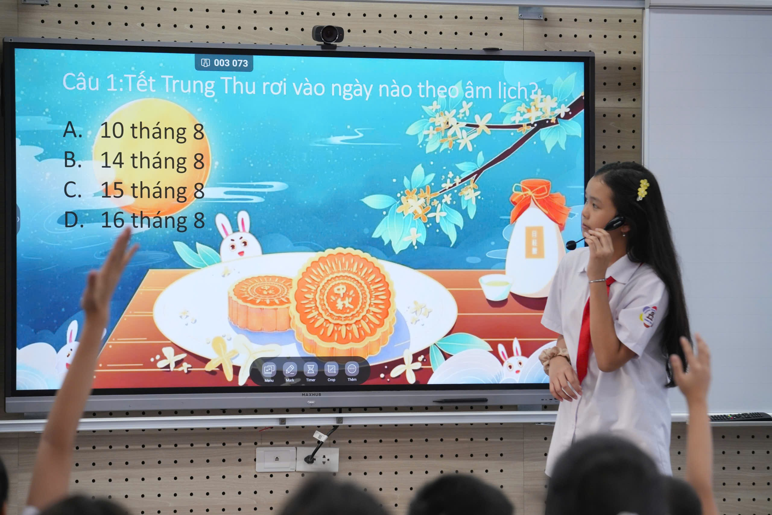 Mở màn, lớp trưởng dẫn dắt cả lớp vào phần quiz nhanh. Câu hỏi tưởng chừng nghiêm túc nhưng qua cách trả lời “lầy lội” của học trò 6A lại hóa thành những tràng cười giòn giã. “Chú Cuội ngồi ở đâu?” – thay vì trả lời “cây đa”, cả lớp đồng thanh “ngồi trên nóc nhà lá komkom!”. Câu “Bánh Trung Thu truyền thống có mấy loại?” thì có bạn trả lời đúng: “bánh nướng và bánh dẻo”, nhưng liền sau đó có bạn chen ngang: “Có thêm loại bánh gà rán nữa!”. Thế là quiz nghiễm nhiên trở thành tiết mục tấu hài độc quyền của 6A.
