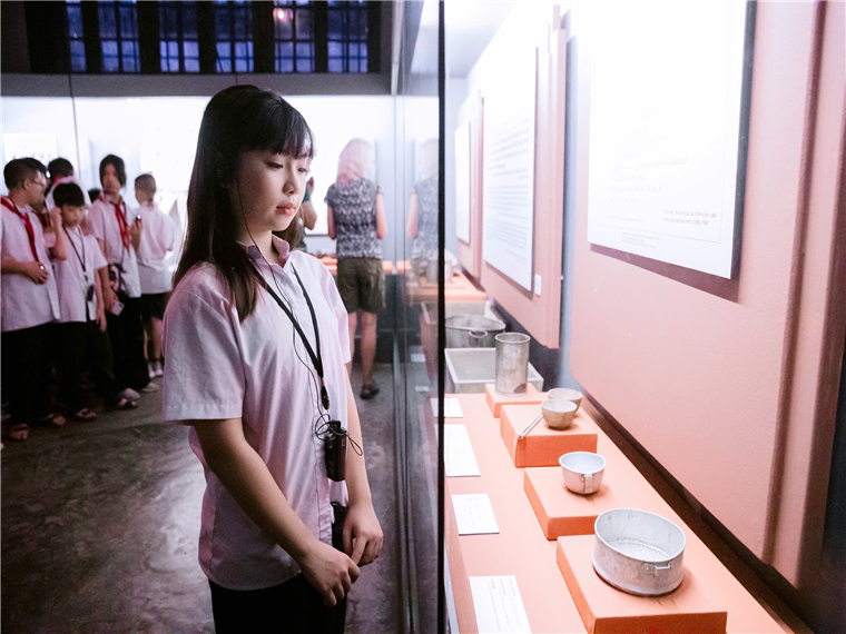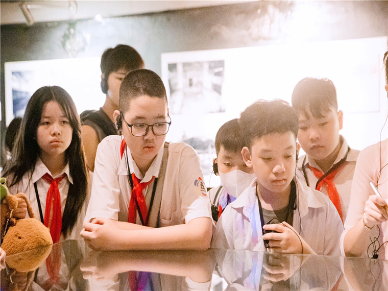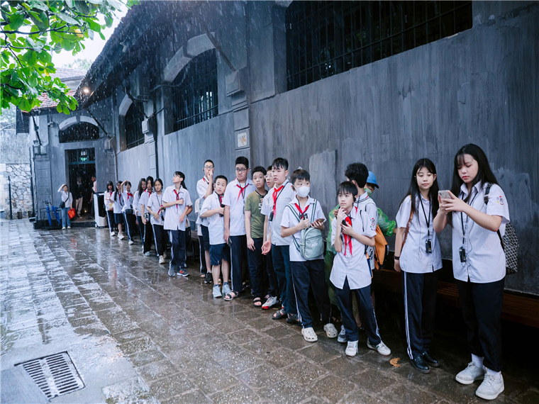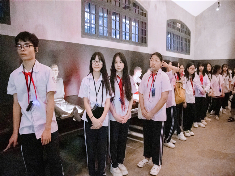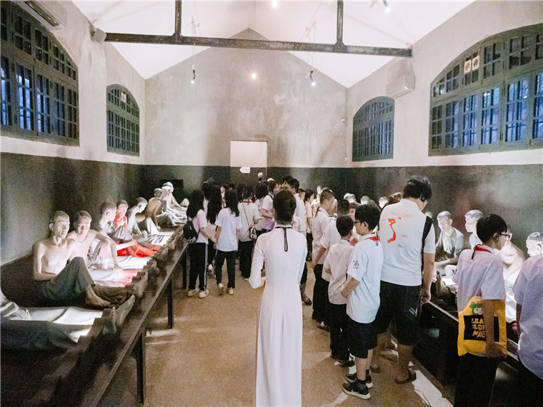 Chúng em tham quan, nghe giới thiệu về nhà tù Hỏa Lò