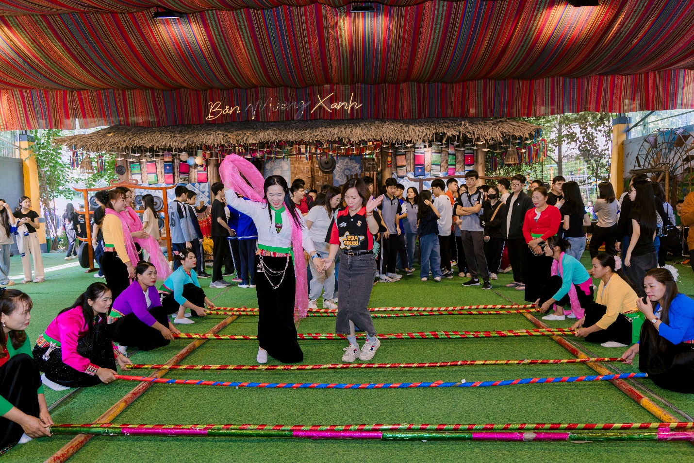 Tại đây, học sinh lớp 6A6 tham gia chuỗi hoạt động trải nghiệm phong phú: Tham quan không gian văn hóa người Mường: tìm hiểu kiến trúc nhà sàn, phong tục sinh hoạt, trang phục, bếp lửa, nhạc cụ dân tộc; nhảy sạp.