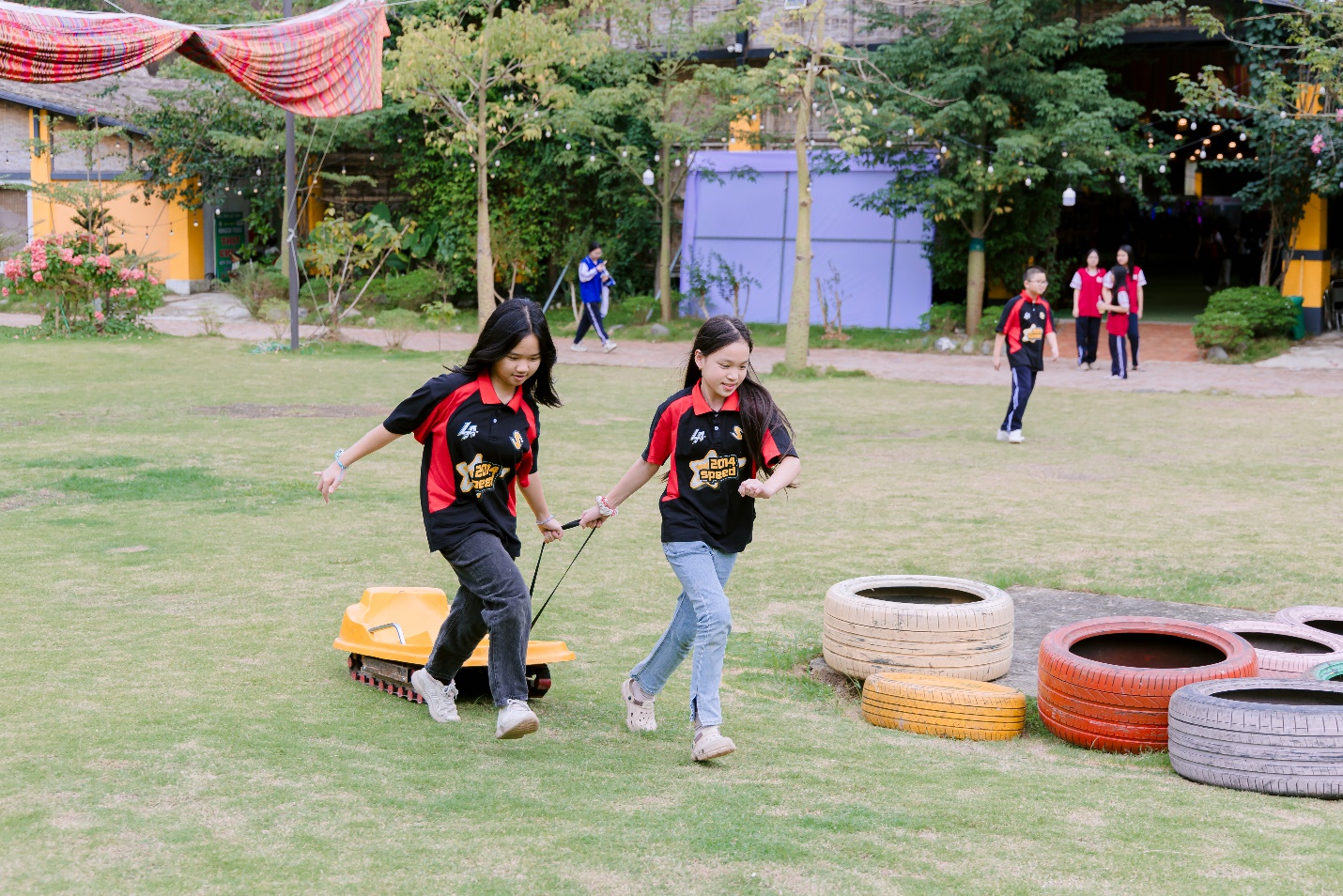 Buổi chiều, các bạn học sinh tiếp tục tham gia chương trình Teambuilding – game show đồng đội với những trò chơi rèn sức bền, tư duy nhóm và khả năng phối hợp. Không còn những rụt rè của ngày đầu học kỳ, học sinh lớp 6A6 đã biết cổ vũ nhau, chia sẻ, động viên và nắm tay cùng vượt thử thách.
