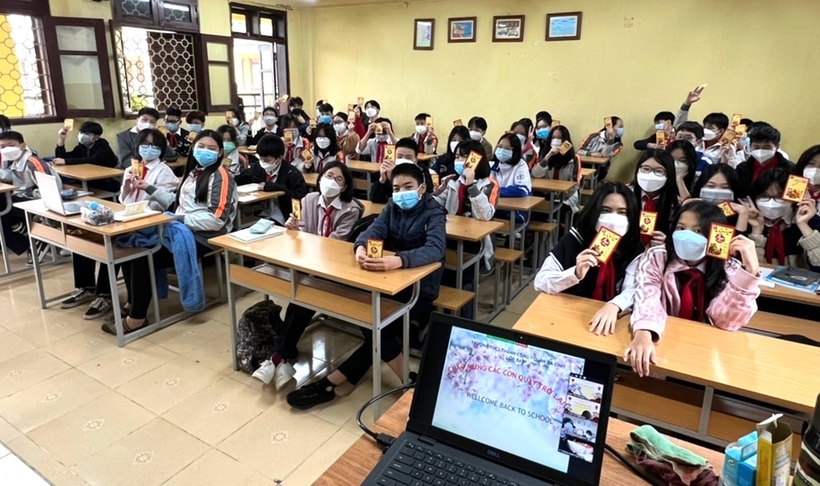 Ngày quay trở lại trường, các lớp học được dọn dẹp rất sạch sẽ. Các bạn học sinh vẫn giữ gìn nề nếp mặc áo trắng, đeo khăn quàng đỏ đầy đủ. Có lẽ tất cả đều như tôi, cảm thấy háo hức vô cùng, cảm giác như mới bước vào lớp 1 vậy. Hôm ấy, mọi người có vẻ đều rất hoan hỉ khi gặp nhau sau một khoảng thời gian dài, nói chuyện trên trời dưới đất, không khí đúng là rất lâu rồi mới có! Sĩ số lớp tôi hôm nay là 47/50, và hôm nay cũng là hôm có sĩ số đông nhất của lớp tôi, tính tới thời điểm hiện tại. Ngày 9/2/2022