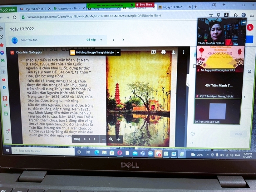 Việc dạy học song song giữa trực tuyến và trực tiếp là rất khó khăn, nhưng nhờ vào những trang bị chu đáo của nhà trường: camera tại lớp, dây mạng nối tới từng phòng..., tình hình đã sớm được khắc phục.
