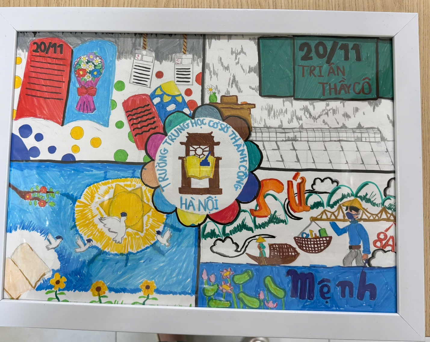 Hưởng ứng các hoạt động chào mừng Ngày Nhà giáo Việt Nam của trường THCS Thành Công, bên cạnh các cuộc thi như văn nghệ, hoa điểm tốt thì hoạt động thi vẽ tranh của tập thể lớp 8A4 cũng vô cùng sôi nổi với những nét vẽ rất đáng yêu, xinh xắn thể hiện tấm lòng của những “họa sĩ nhí” với các thầy cô kính yêu.