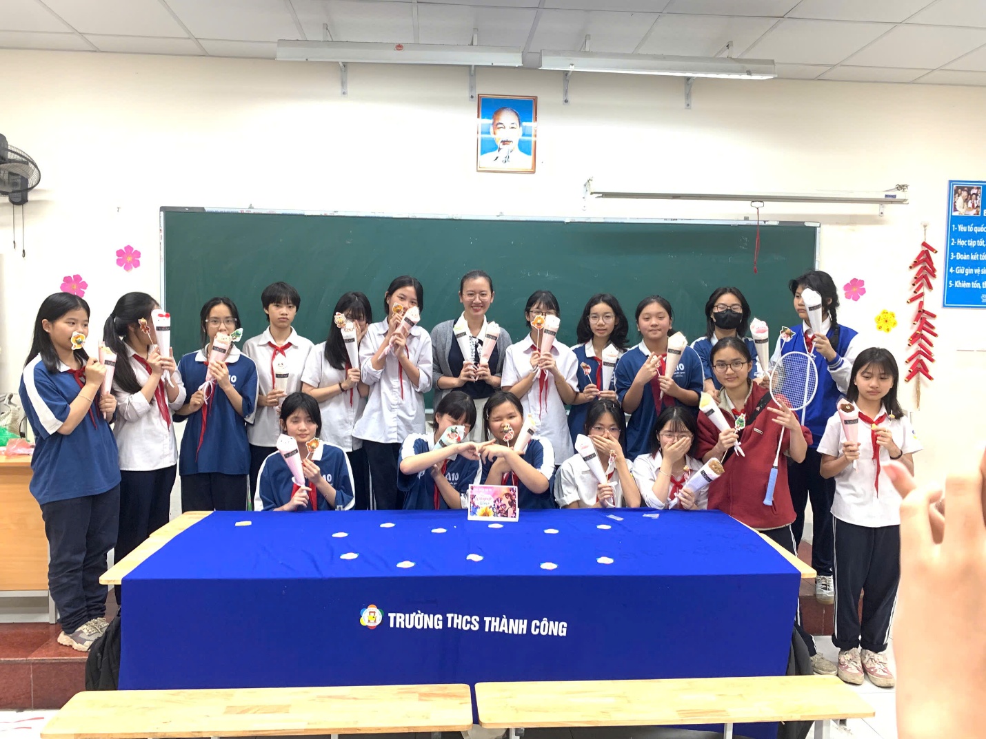 Có lẽ điều đáng quý nhất của buổi sinh hoạt hôm ấy không chỉ nằm ở những bó hoa, tấm thiệp hay ly trà chanh ngọt ngào, mà chính là tình cảm chân thành mà các thành viên dành cho nhau. Trong tập thể lớp 8A10, sự quan tâm và sẻ chia dường như đã trở thành một nét đẹp quen thuộc, được vun đắp qua từng hoạt động nhỏ của lớp.