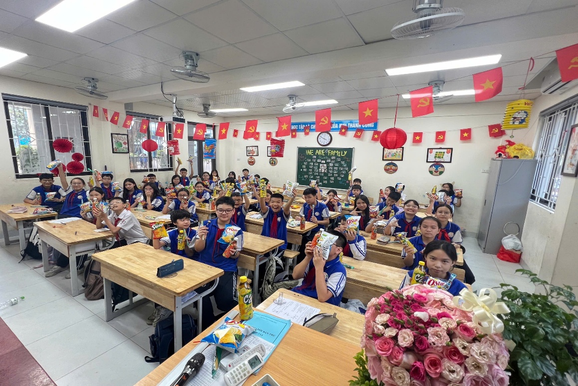 Các bạn lớp 7A4 hào hứng trong buổi liên hoan lớp