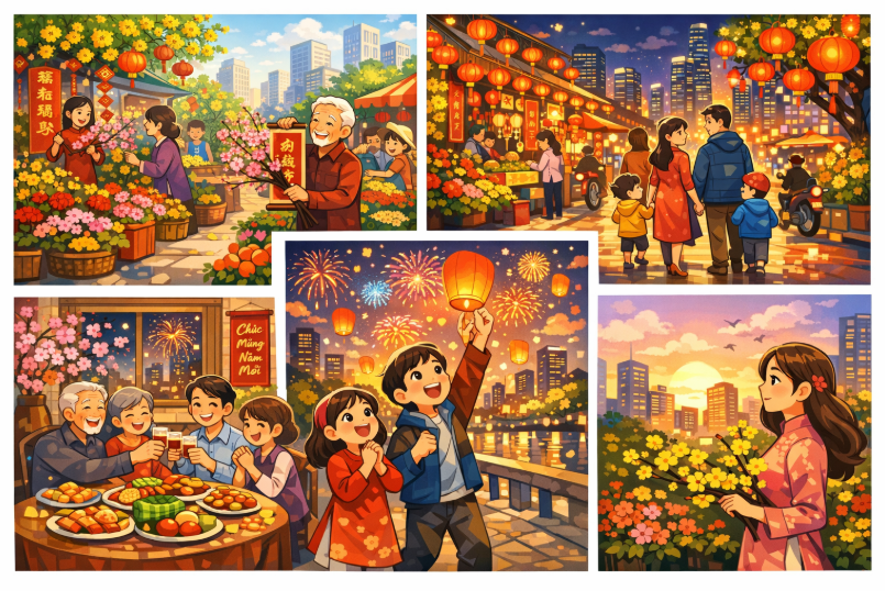 Mùa xuân trong lòng phố thị không chỉ đẹp bởi cảnh sắc rực rỡ, mà còn bởi nhịp sống sôi động và tình người ấm áp. Đó là mùa của đoàn viên, của yêu thương, của những khởi đầu mới. Và giữa bao bộn bề của cuộc sống đô thị, sắc xuân vẫn luôn là điểm sáng dịu dàng, làm lòng người thêm tin yêu và tha thiết với cuộc đời.