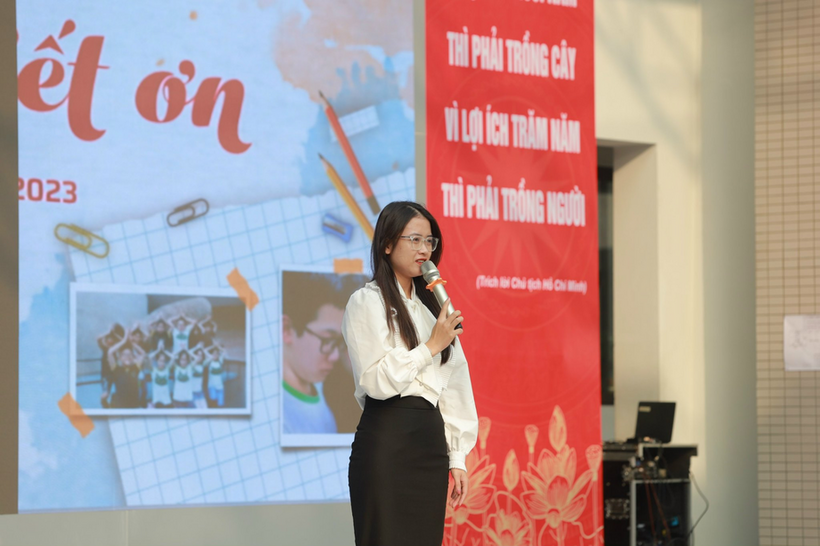 Cô Nguyễn Kim Hoài Nam - Tổng phụ trách - triển khai các hoạt động trong tuần học mới