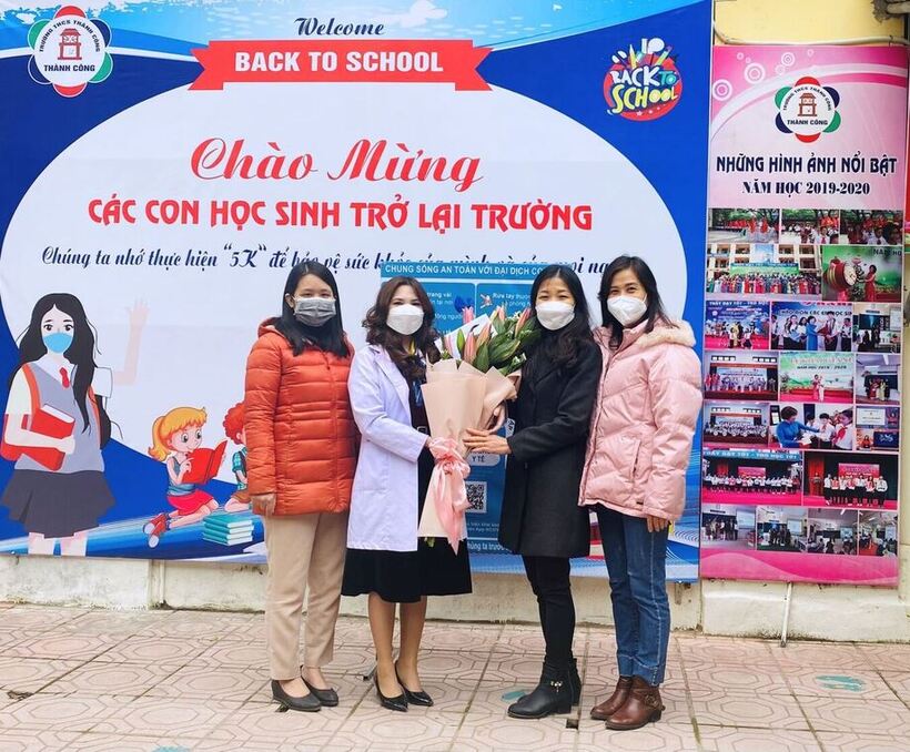 Những ngày giáo viên và học sinh đi tiêm, nụ cười thân thiện và bóng cô Ngân đi thoăn thoắt từ phòng nọ sang phòng kia làm chúng tôi thấy yên tâm hơn. Cô cũng trực tiếp khám sàng lọc cho học sinh, cẩn thận, nhẹ nhàng và chu đáo. Rồi cô lại cặm cụi ngồi thống kê các số liệu để báo cáo nhanh và chính xác nhất về tình hình tiêm phòng của trường.