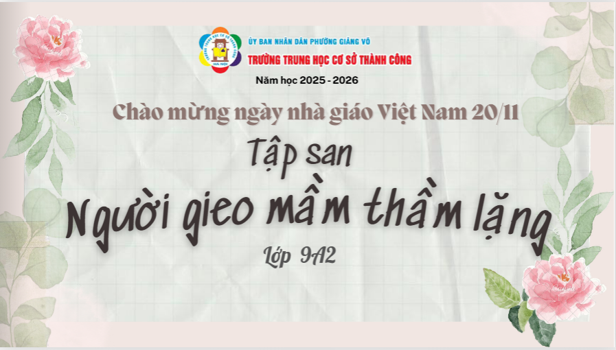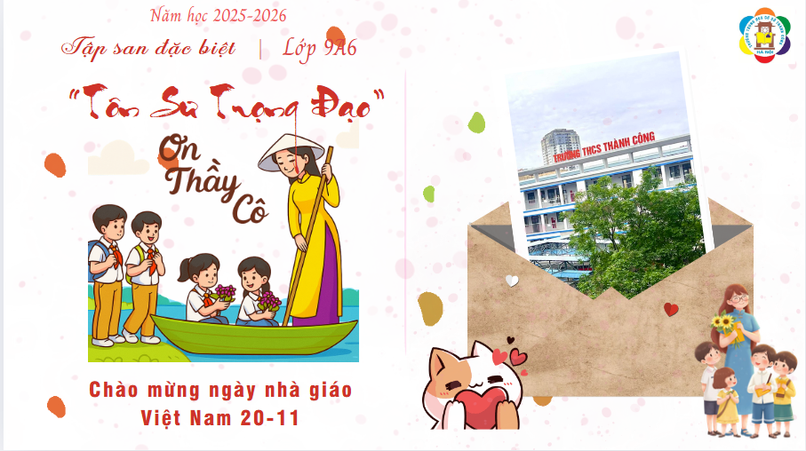 Hướng tới kỷ niệm 43 năm Ngày Nhà giáo Việt Nam (20/11/1982 – 20/11/2025), học sinh khối 9 Trường THCS Thành Công đã thực hiện 9 tập san tri ân điện tử đầy sáng tạo trên nền tảng Canva. Mỗi tập san là một câu chuyện, một cảm xúc và là lời tri ân chân thành mà các con gửi tới thầy cô giáo – những người đã đồng hành và nâng bước các con trong suốt chặng đường học tập.