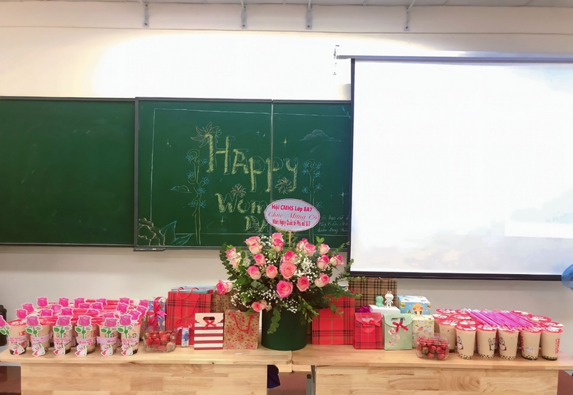Các bạn nam tặng những món quà nhỏ xinh cho cô giáo chủ nhiệm và các bạn nữ.