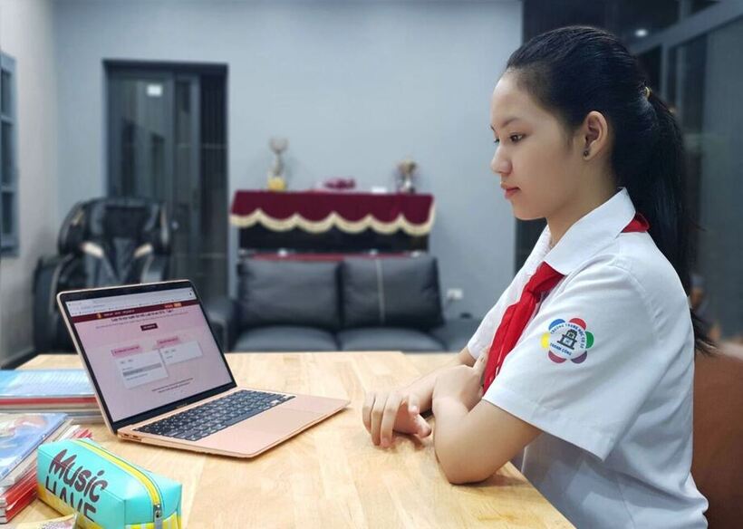 Thành thạo Tin học, học sinh trường THCS Thành Công chủ động và tích cực trong phong trào học trực tuyến.