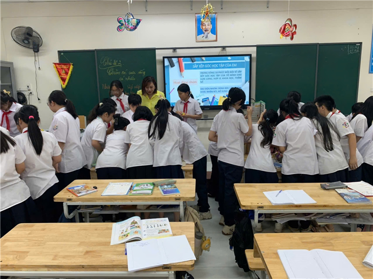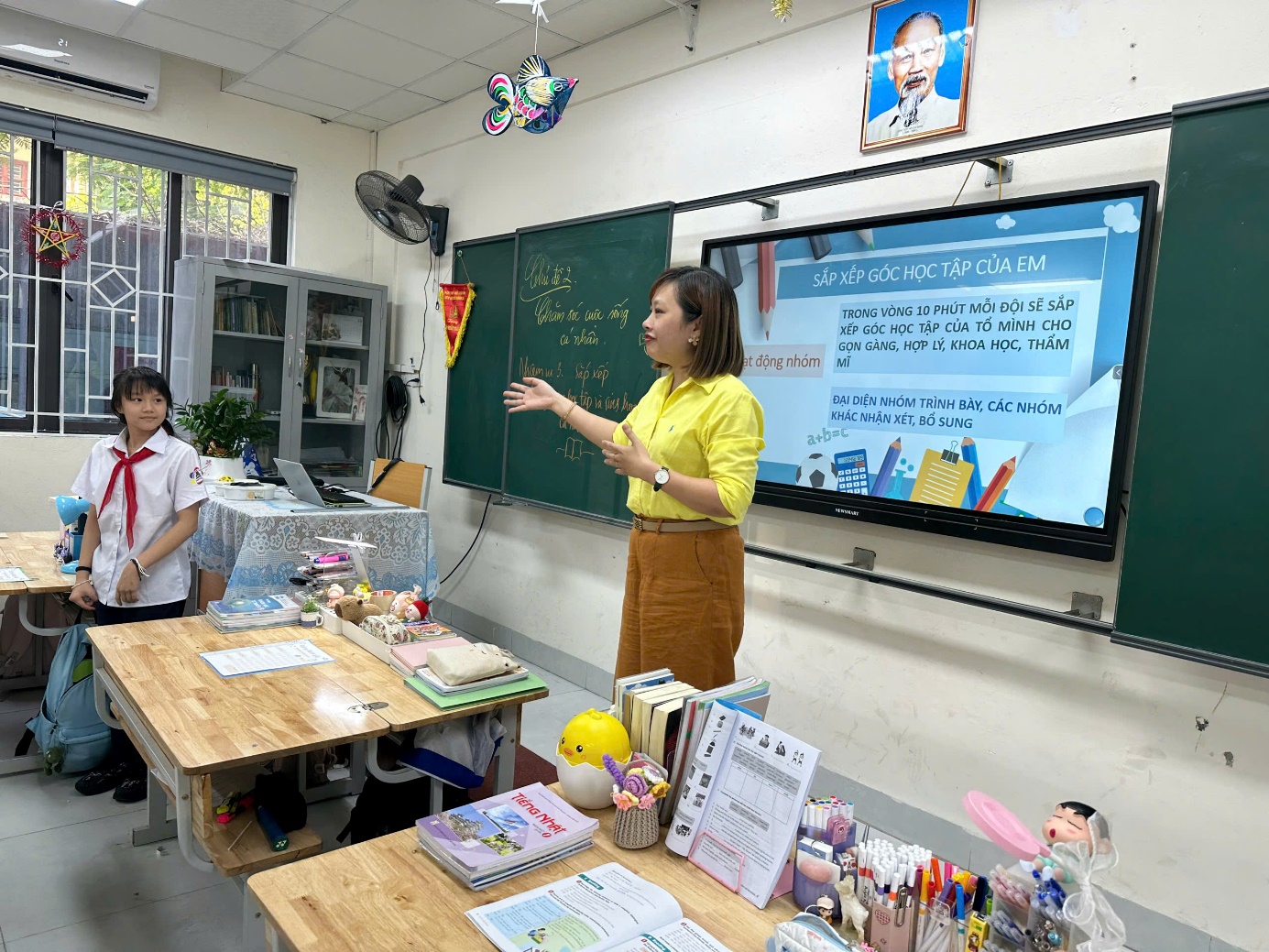 Tiết học mở đầu bằng phần thảo luận sôi nổi do cô giáo chủ nhiệm dẫn dắt, trong đó các bạn cùng nhau khám phá ý nghĩa và vai trò của việc có một góc học tập gọn gàng, ngăn nắp. Các bạn học sinh đã nhận ra rằng, góc học tập ngăn nắp không chỉ giúp học tập hiệu quả hơn mà còn tạo cảm giác thoải mái và tăng cường khả năng tập trung.