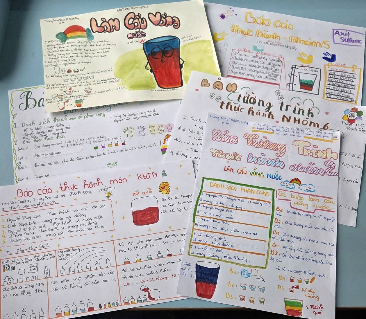 Nhiều nhóm đã làm thành công, tạo được những cốc “cầu vồng nước” đẹp mắt với các lớp chất lỏng phân tầng rõ ràng. Nhìn cốc của mình mà chúng em cảm giác như vừa khám phá ra bí mật của… bầu trời sau mưa.