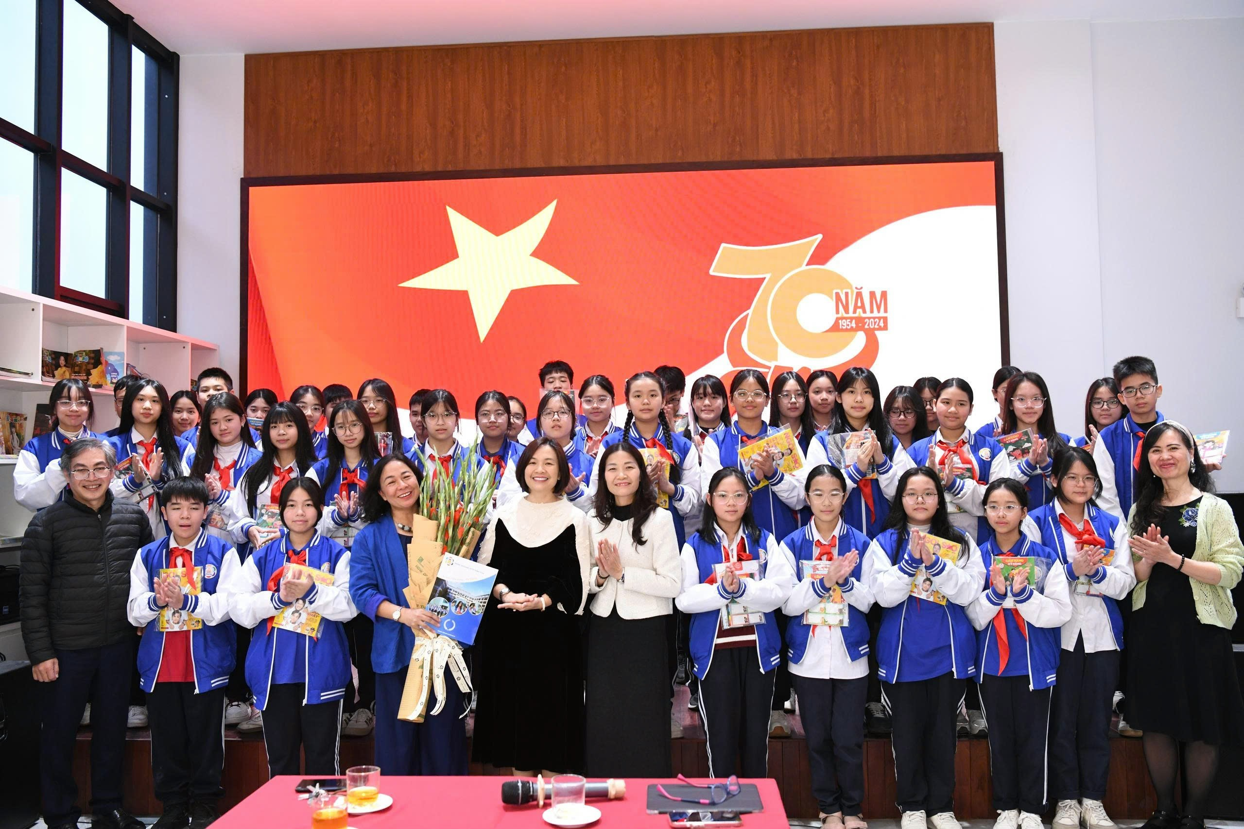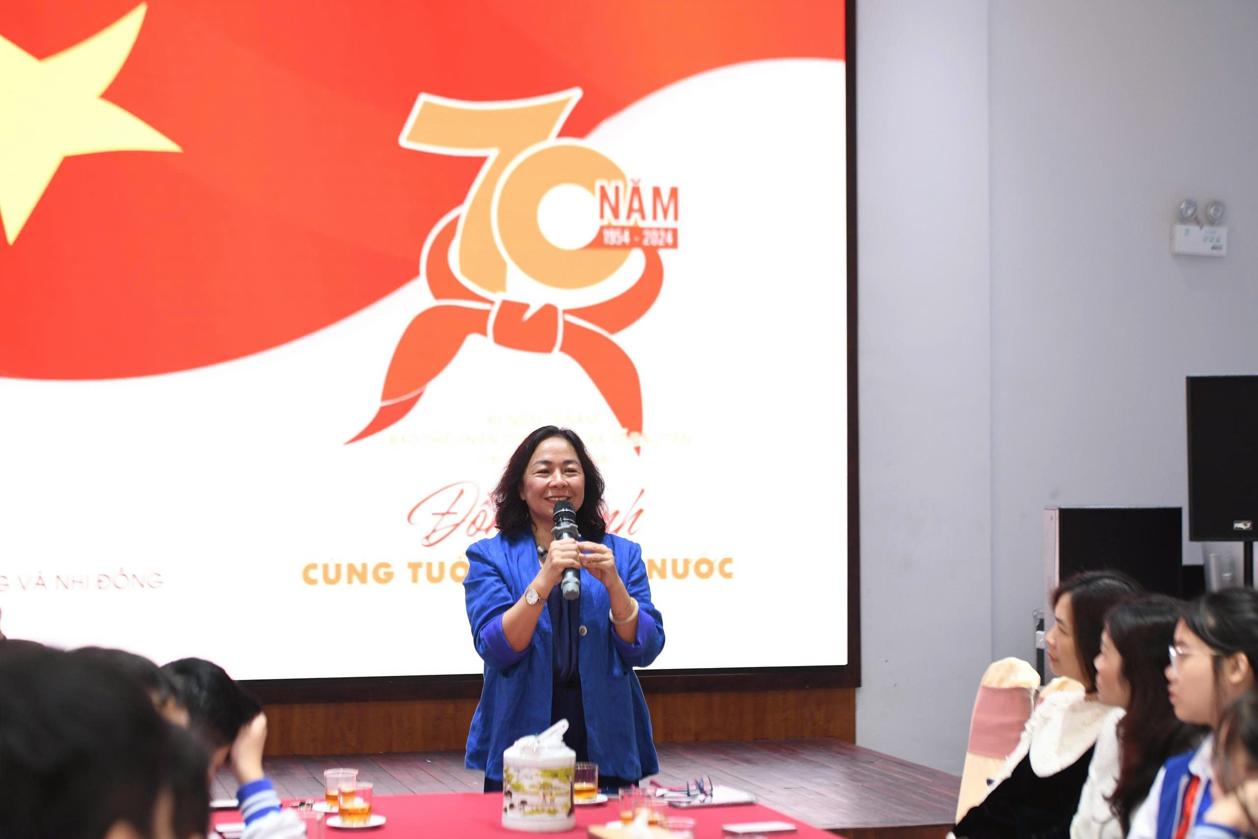 Đứng giữa không gian trang trọng và ấm áp, cô giáo Nguyễn Ngọc Anh - Hiệu trưởng nhà trường đã xúc động bày tỏ lời cảm ơn sâu sắc tới các nhà báo, phóng viên của tòa soạn Báo Thiếu niên Tiền phong và Nhi đồng. Lời cảm ơn của cô đã nói hộ những suy nghĩ của tất cả chúng tôi: tòa soạn chính là nhịp cầu nối những tâm hồn trẻ thơ với những giá trị nhân văn cao đẹp.