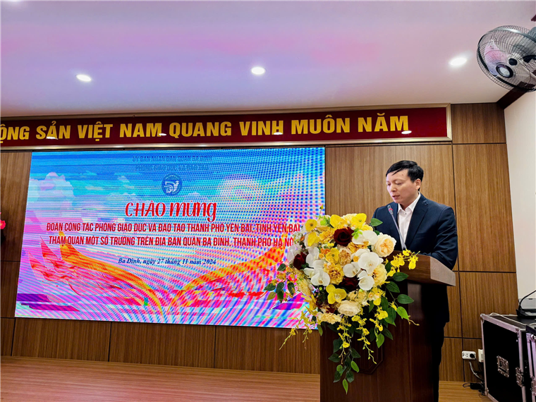 Phát biểu chào mừng đoàn công tác của ngành GD&ĐT Thành phố Yên Bái, ông Nguyễn Như Tùng - Phó trưởng phòng GD&ĐT quận Ba Đình khẳng định: “Chương trình trao đổi học tập giữa ngành GD&ĐT Thành phố Yên Bái và ngành GD&ĐT quận Ba Đình là một sáng kiến giúp các cán bộ quản lí, các giáo viên có cơ hội học hỏi, chia sẻ kinh nghiệm giảng dạy và học tập, từ đó nâng cao chất lượng giáo dục tại mỗi địa phương.”