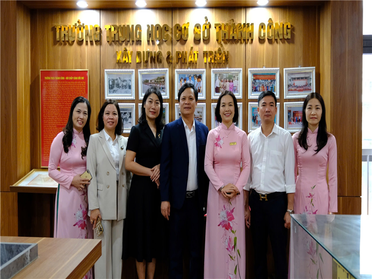 Tại trường THCS Thành Công, đoàn công tác đã tham quan cơ sở vật chất của nhà trường: từ các phòng học đến các phòng chức năng, từ thư viện đến các phòng bộ môn…Đoàn công tác dừng lại rất lâu nơi phòng truyền thống của nhà trường nơi ghi dấu ấn 46 năm xây dựng và phát triển của mái trường Thành Công.