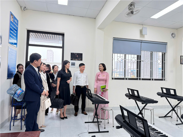 Đoàn công tác tham quan phòng Âm nhạc trường THCS Thành Công