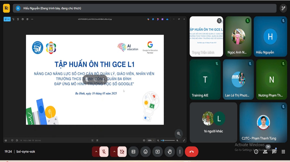 Thầy Trần Minh Trọng chuyên gia đào tạo của Google tập huấn cho giáo viên nhà trường ôn thi cấp chứng chỉ GCE L1.
