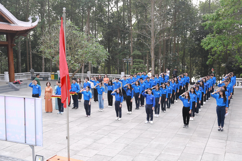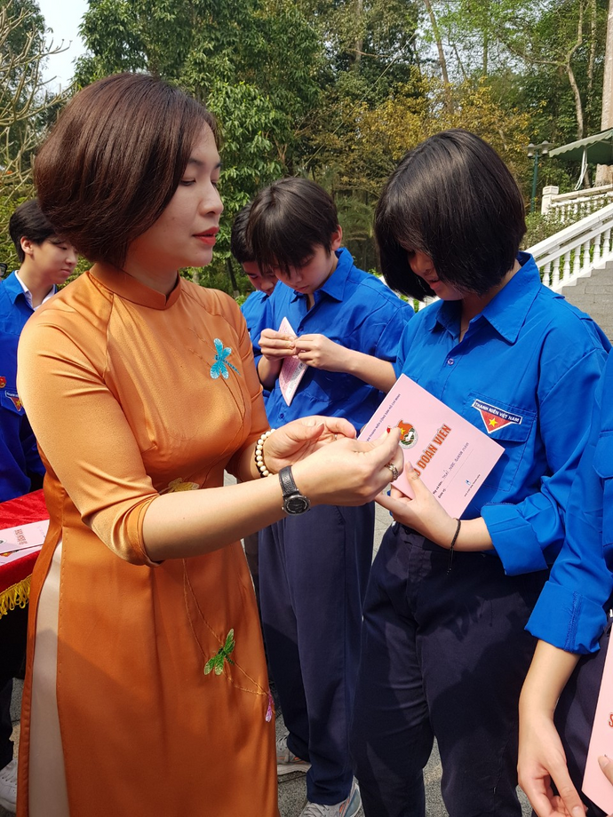 Tại khu di tích, nhà trường làm lễ dâng hương tưởng niệm Chủ tịch Hồ Chí Minh, đồng thời tổ chức kết nạp Đoàn cho học sinh khối 9, là những đội viên ưu tú.