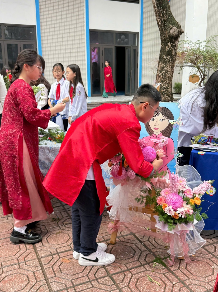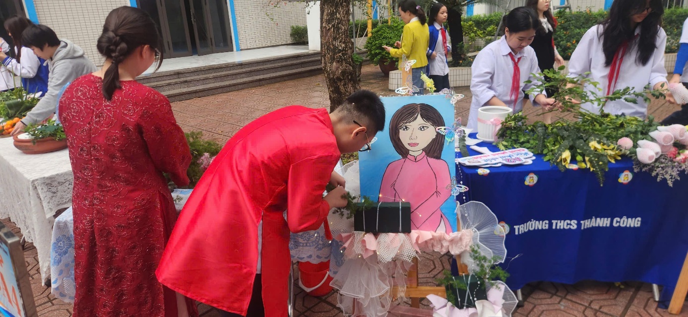 Từ những ngày đầu tháng ba, chúng con đã hồi hộp và háo hức chờ đợi đến ngày cuộc thi được tổ chức. Bạn Đinh Minh Hiếu đại diện cho các bạn nam của lớp đã đăng kí thi cắm hoa để thể hiện sự yêu thương, trân trọng của phái mạnh dành cho một nửa còn lại của thế giới! Bạn đã vẽ bức tranh chân dung cô Lã Minh Phương – cô giáo chủ nhiệm lớp 6A3 của chúng con. Tác phẩm “Vũ khúc yêu thương” chính là tình cảm và lòng kính yêu mà chúng con muốn dành tặng cho cô – người mẹ thứ hai của chúng con!