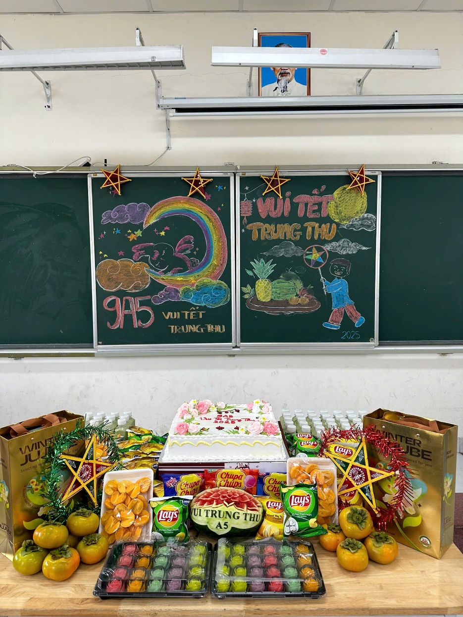 Khi công việc trang trí, bày biện đã hoàn thiện, cả lớp cùng liên hoan thật vui vẻ với biết bao đồ ăn hợp sở thích của bọn mình. Được ngồi bên nhau cùng cười nói, thưởng thức những món ăn yêu thích trong buổi trung thu cuối cùng dưới mái trường THCS Thành Công khiến chúng mình càng mong muốn kéo dài mãi những khoảnh khắc này.