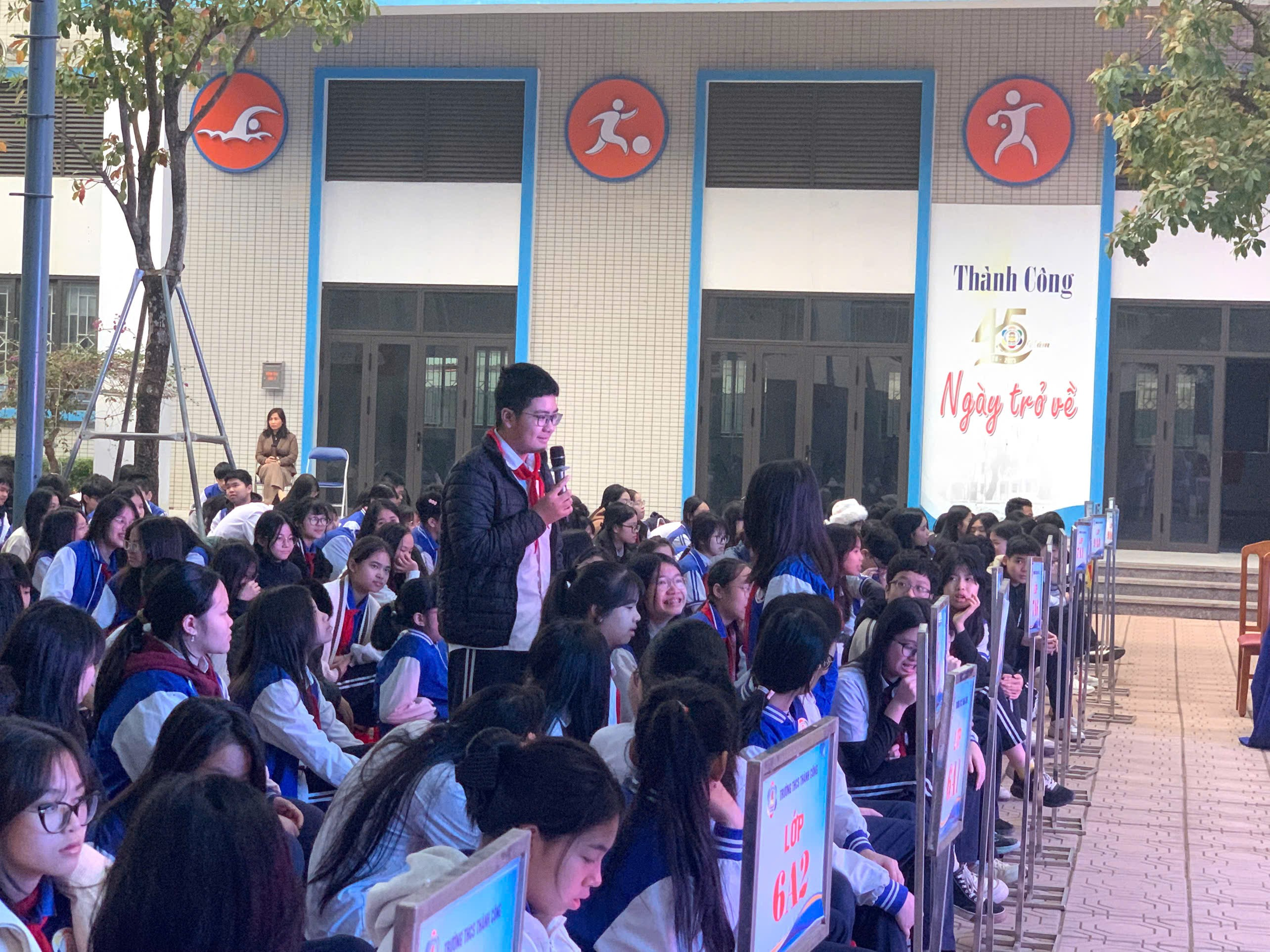 Tiếp nối là phần trò chơi, tạo không khí hào hứng cho toàn trường. Thông qua các câu hỏi và tình huống liên quan đến cách ứng xử trong tình bạn và phòng, chống bạo lực học đường, các bạn học sinh vừa được tham gia tương tác, vừa rút ra cho mình những bài học thiết thực.