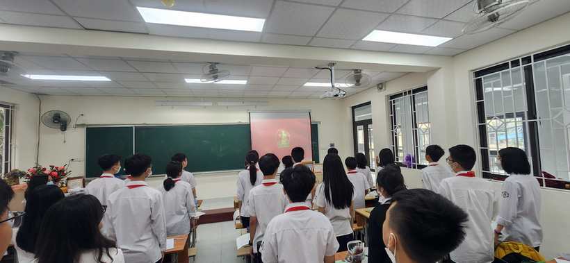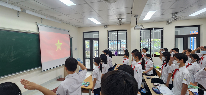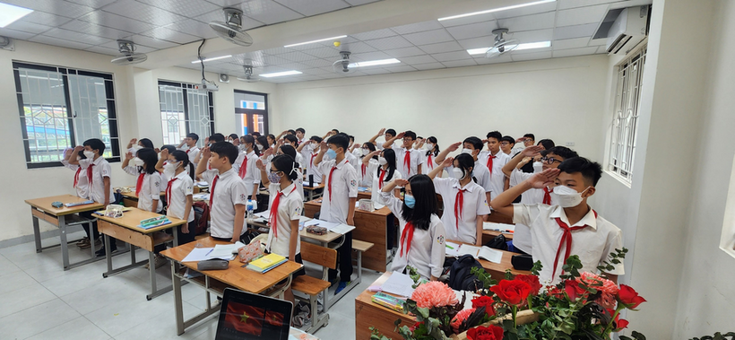 Chiều thứ hai ngày 3/10/2022, vẫn như thường lệ, tập thể lớp 8A5 chúng em đã tham dự buổi lễ chào cờ đầu tuần. Nhưng hôm nay lại có chút đặc biệt khi ngôi trường Thành Công của chúng em đang trong quá trình cải tạo để trở nên khang trang, đẹp đẽ hơn. Trong căn phòng mới, qua khung cửa sổ, ánh nắng nhạt và chút gió se lạnh của những ngày đầu thu khiến buổi lễ chào cờ trang nghiêm là lung linh hơn.