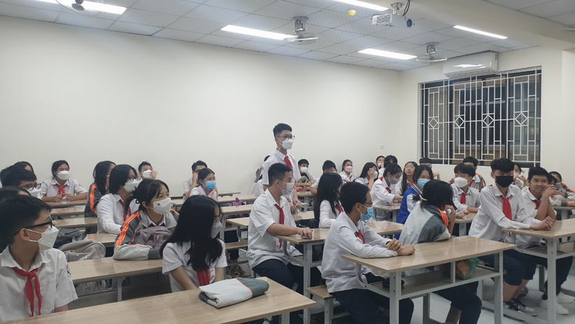 Ảnh: Các nhà sử học của chi đội 8A1 đang điều khiển chương trình Ngày này năm xưa